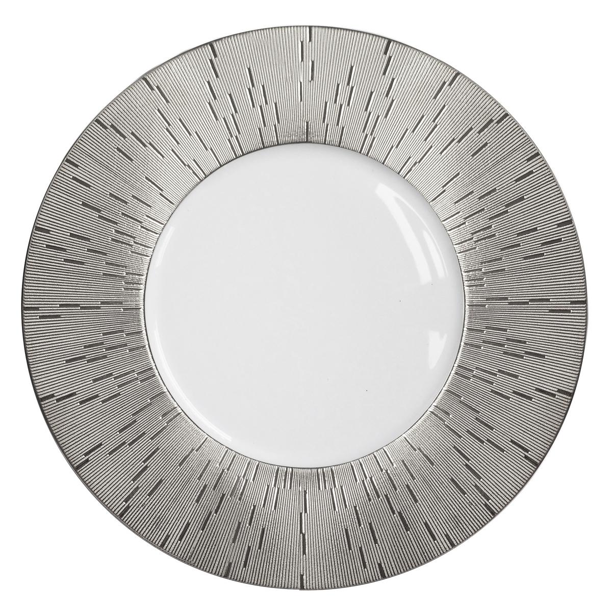 Limoges porcelain from Haviland stands for perfect craftsmanship, and you will find it impossible to resist running your fingers over this gorgeous "Infini" dinnerware line. All of the "Infini" plates by Haviland have a radial relief pattern, which is "engraved" into the Limoges porcelain. Precious platinum refinement on the rim of the plates add a distinctive air of sophistication to this exclusive porcelain making it particularly eye-catching. Each plate from Haviland is a unique piece, exclusively shaped and worked by hand.