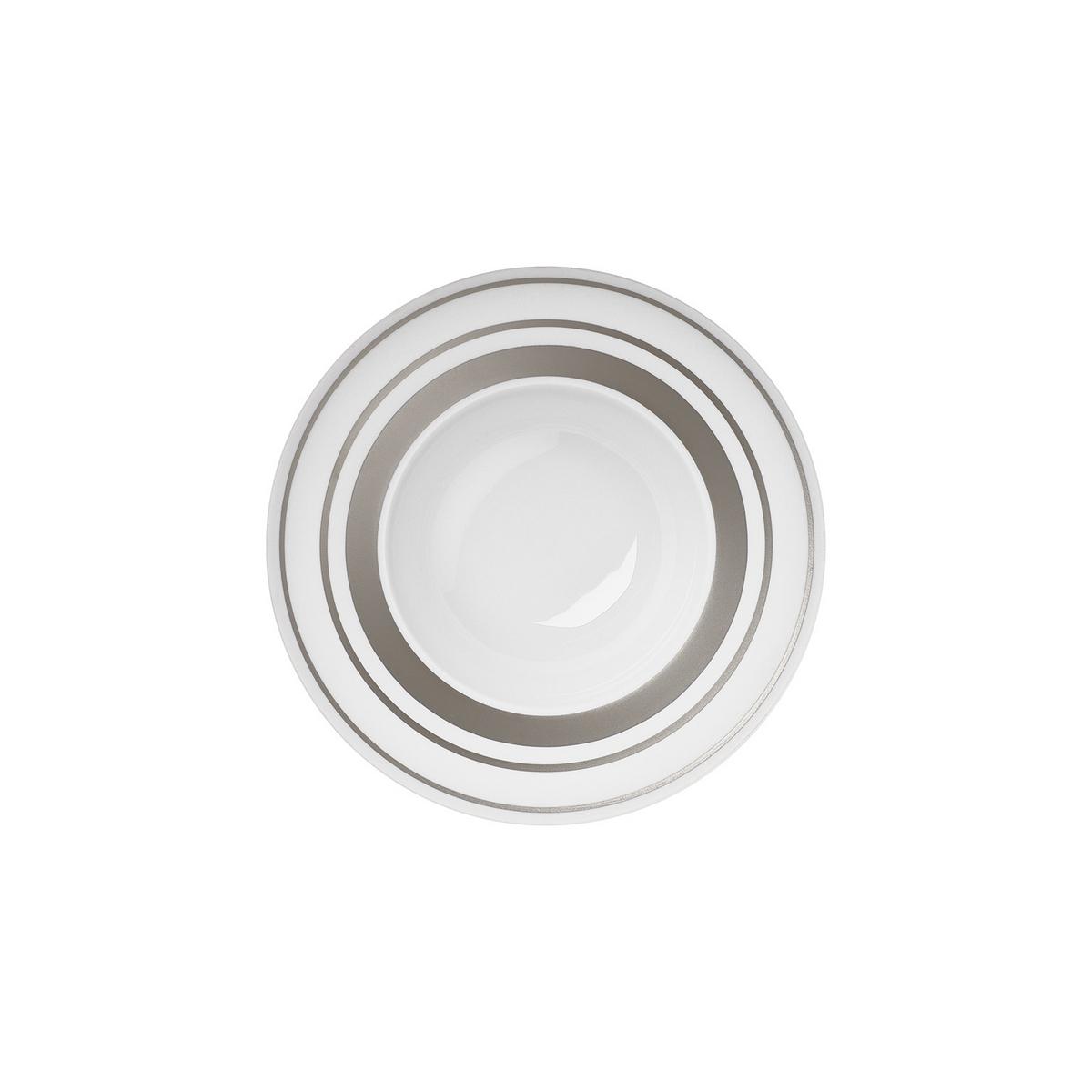 In 2005, Hering Berlin brought out its first two dinner services. They immediately became the darlings of the avant-garde chefs who recognised the totally new stage the uncompromisingly modern plates offer for their own creative materpieces. This partially glazed "Glamour" dinner service by Hering Berlin is handcrafted in bisque porcelain and refined with fine platinum. First, the white, unglazed bisque porcelain is smoothed and polished using a special diamond sponge. Only when the very last speck of dust has been removed, it is possible to paint by hand the platinum. In short: handcraftsmanship at its best. Individual pieces of the service also make stunning eye-catchers and can naturally be combined with other Hering Berlin dinner services. "Glamour" is also available with a gold finish (see below).