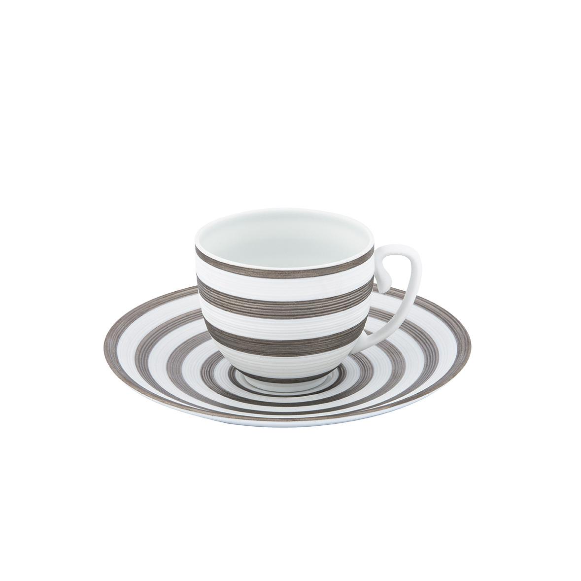 "Hémisphère Platinum Stripe" double espresso cup and saucer by J.L Coquet