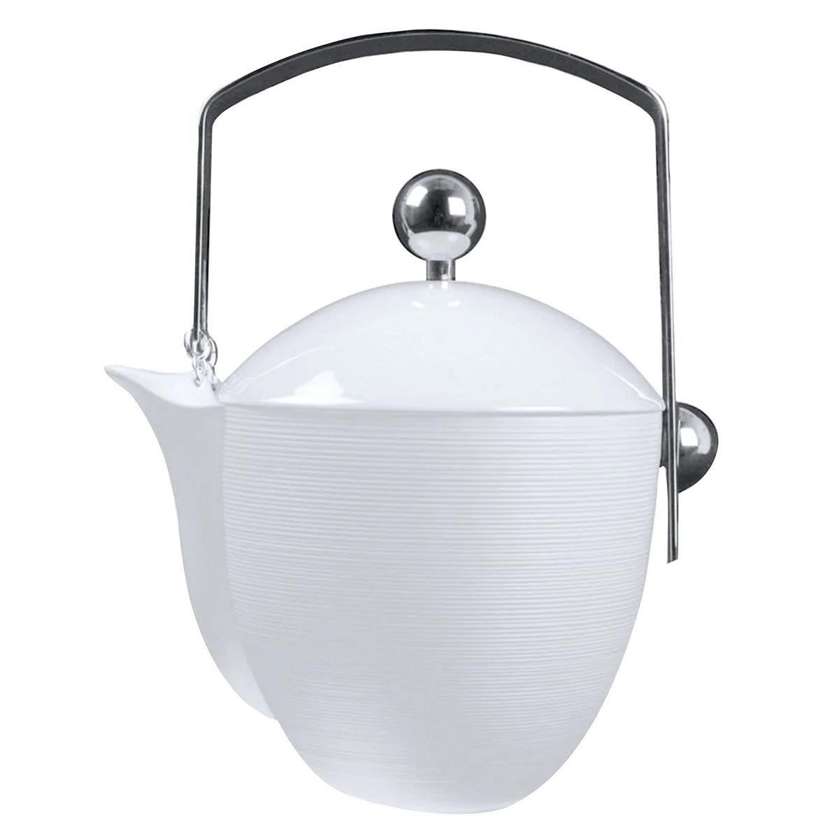 "Hémisphère White" teapot, with stainless steel knob and handle by J.L Coquet