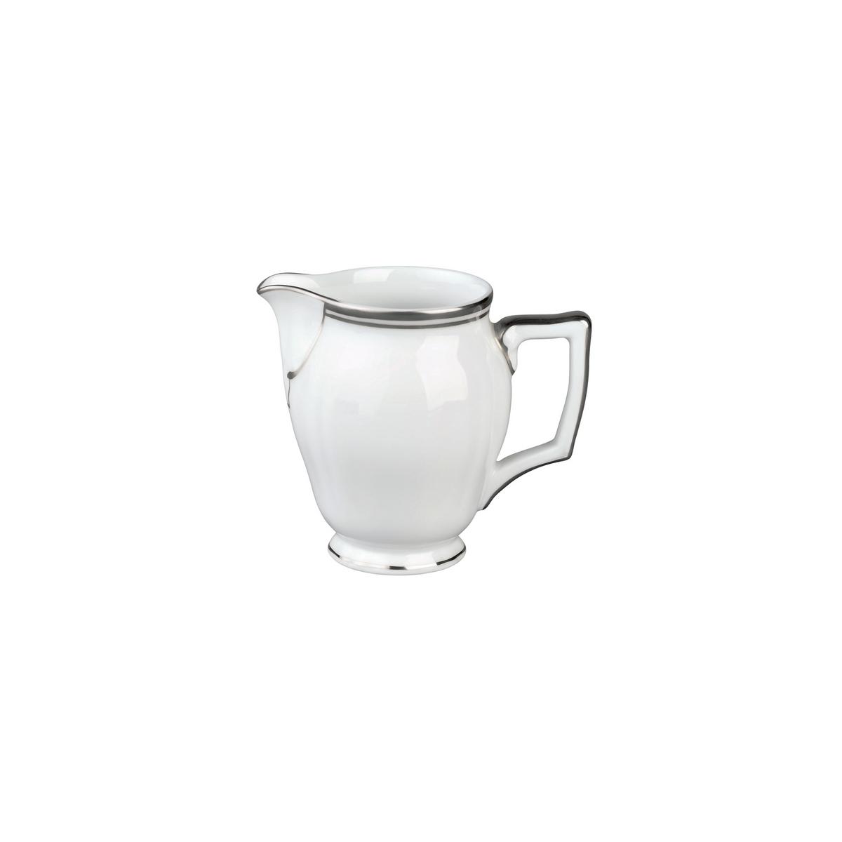 The "Polka Platinum" dinnerware by Raynaud gleams in the famous white of Limoges porcelain. In itself, the porcelain with the fine platinum rim is quite sleek and simple. The dinner service is framed with two rims in shiny platinum. The double curved rim is applied by hand. This beautiful dinnerware collection is designed to last. It can be wonderfully mixed or extended with other services by Raynaud.