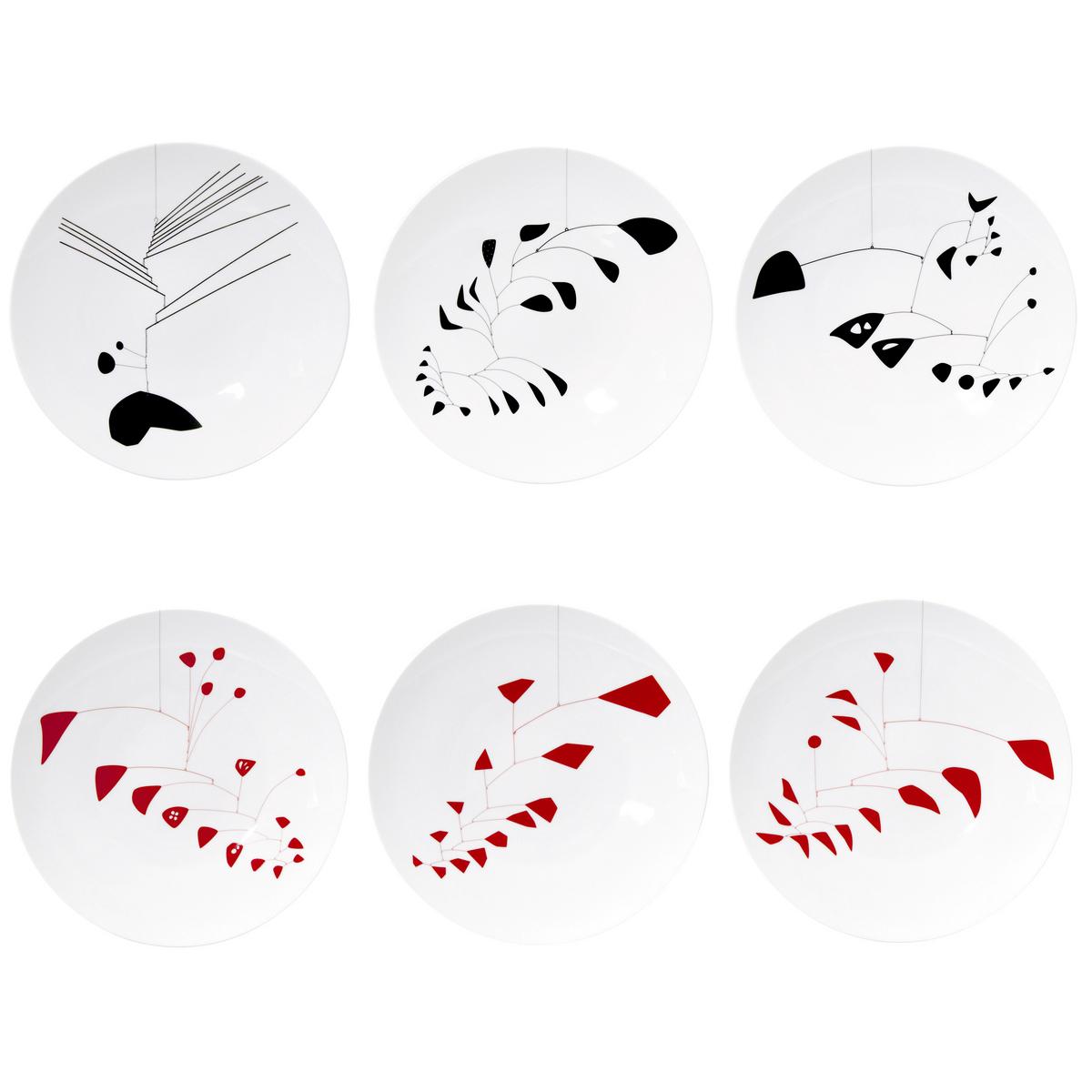 In homage to the American artist Alexander Calder (1898 – 1976), the French porcelain manufacturer Bernardaud has brought out this six-piece set of "Calder" plates. The edition is limited to 3,000 pieces. The limited collection is the result of a close exchange of ideas with the Calder Foundation. Six different mobiles that Alexander Calder created in the 1940s and 1950s were selected for the design. The result: modern dinner plates of the finest Limoges porcelain from Bernardaud depicting mobiles in red and black.
