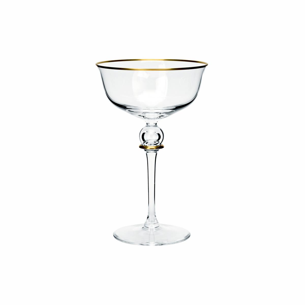 The "Juwel Gold" crystal glasses from Theresienthal are almost like the cast of a modern ballet. Every hand-cut glass in the series displays an elegantly buoyant design. On the delicate stem balances a hollow sphere enthroned on top of which is the bowl. The appearance is rounded off with gold rims. Each glass in the "Jewel Gold" series from Theresienthal has its own distinctive feature. As an ensemble, the impression is particularly strong- exactly like the dancers in a ballet.