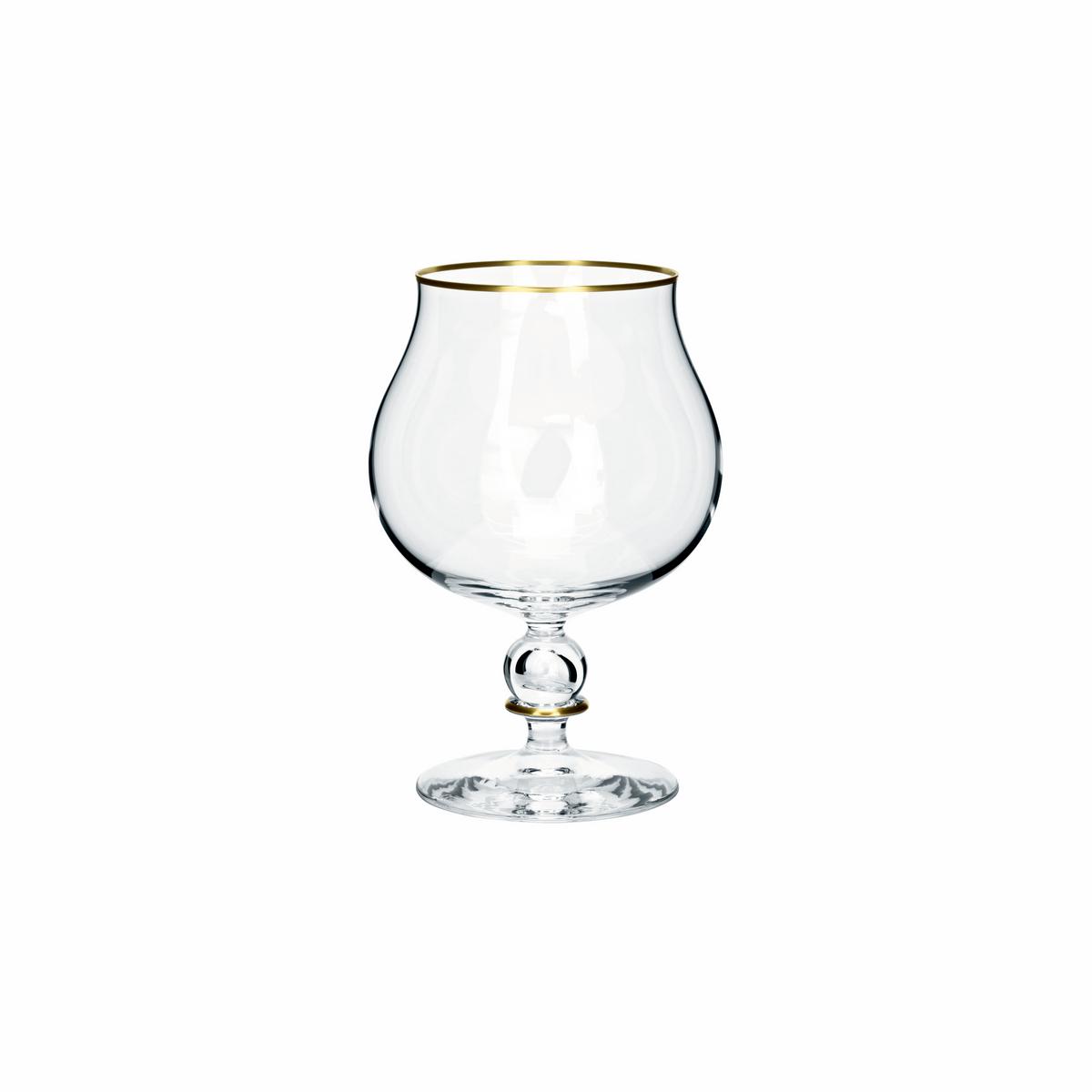 The "Juwel Gold" crystal glasses from Theresienthal are almost like the cast of a modern ballet. Every hand-cut glass in the series displays an elegantly buoyant design. On the delicate stem balances a hollow sphere enthroned on top of which is the bowl. The appearance is rounded off with gold rims. Each glass in the "Jewel Gold" series from Theresienthal has its own distinctive feature. As an ensemble, the impression is particularly strong- exactly like the dancers in a ballet.