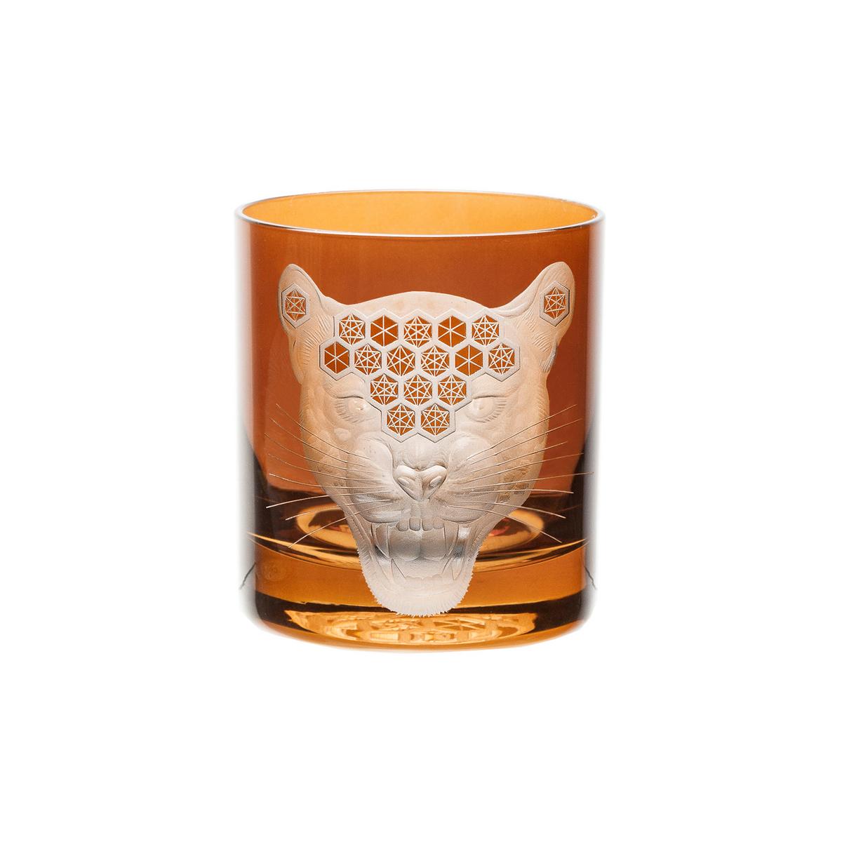 "African Safari" double old fashioned tumbler, jaguar in rust by Artel