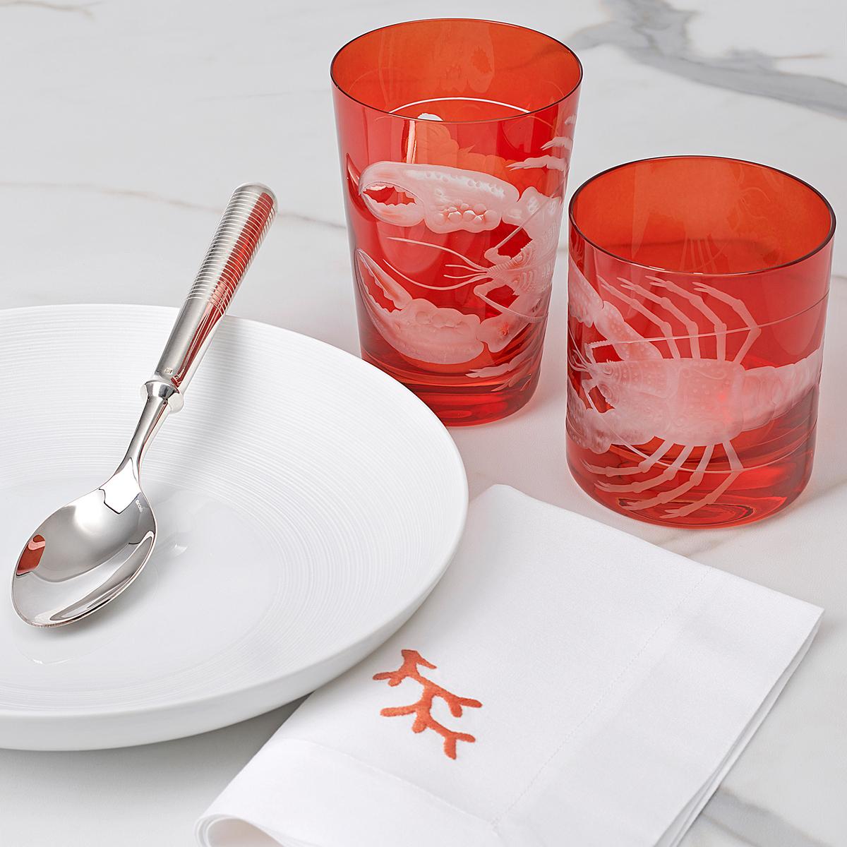 The "Lobster" tumblers from Artel are ideal for every summer, maritime theme being used for table decoration. Lobster and sea simply belong with one another. In tribute to this remarkable marine creature, designer and Artel company founder Karen Feldman has dedicated this "Lobster" design to it. The lobster is depicted in tremendous detail and the intricate cut gives it a very lifelike appearance.