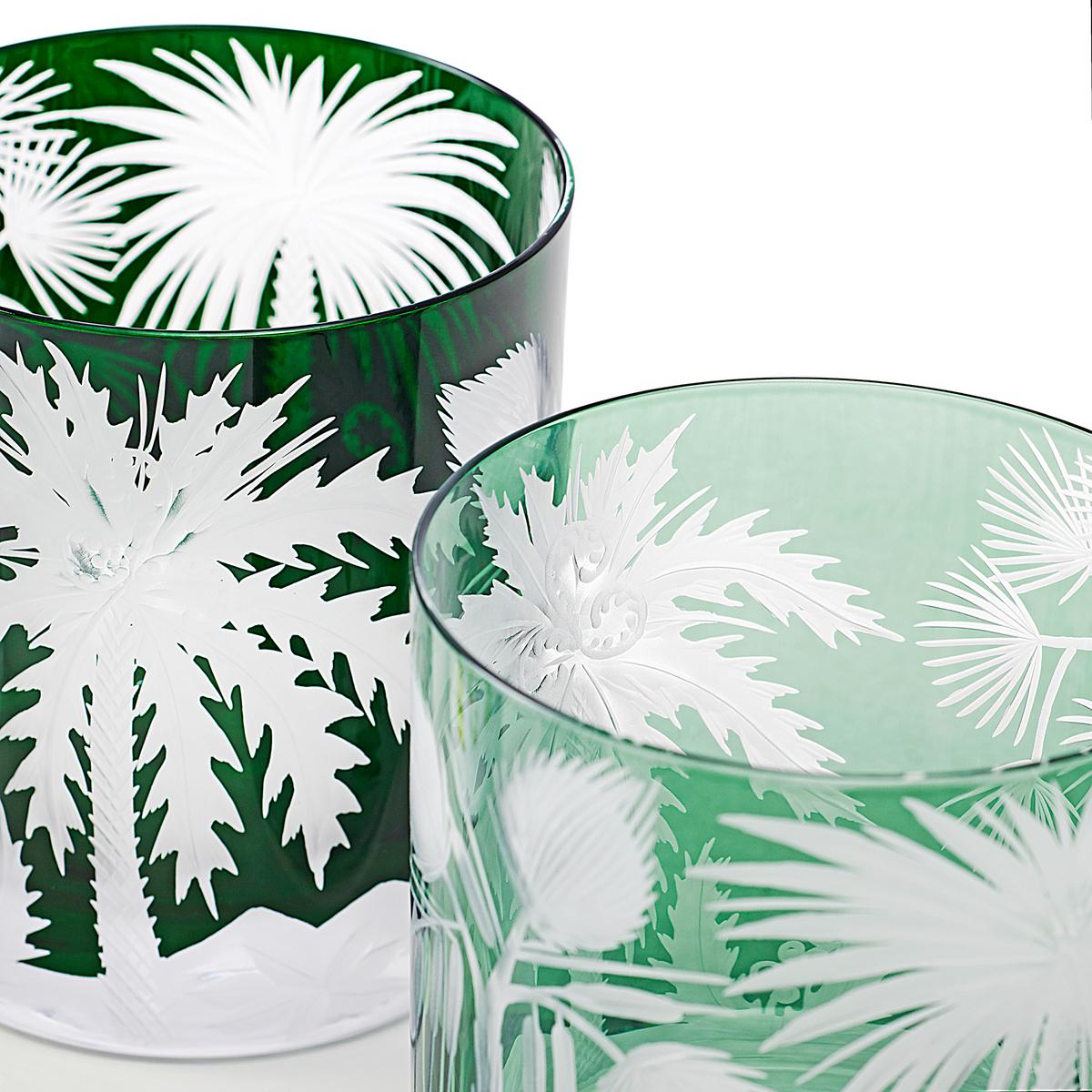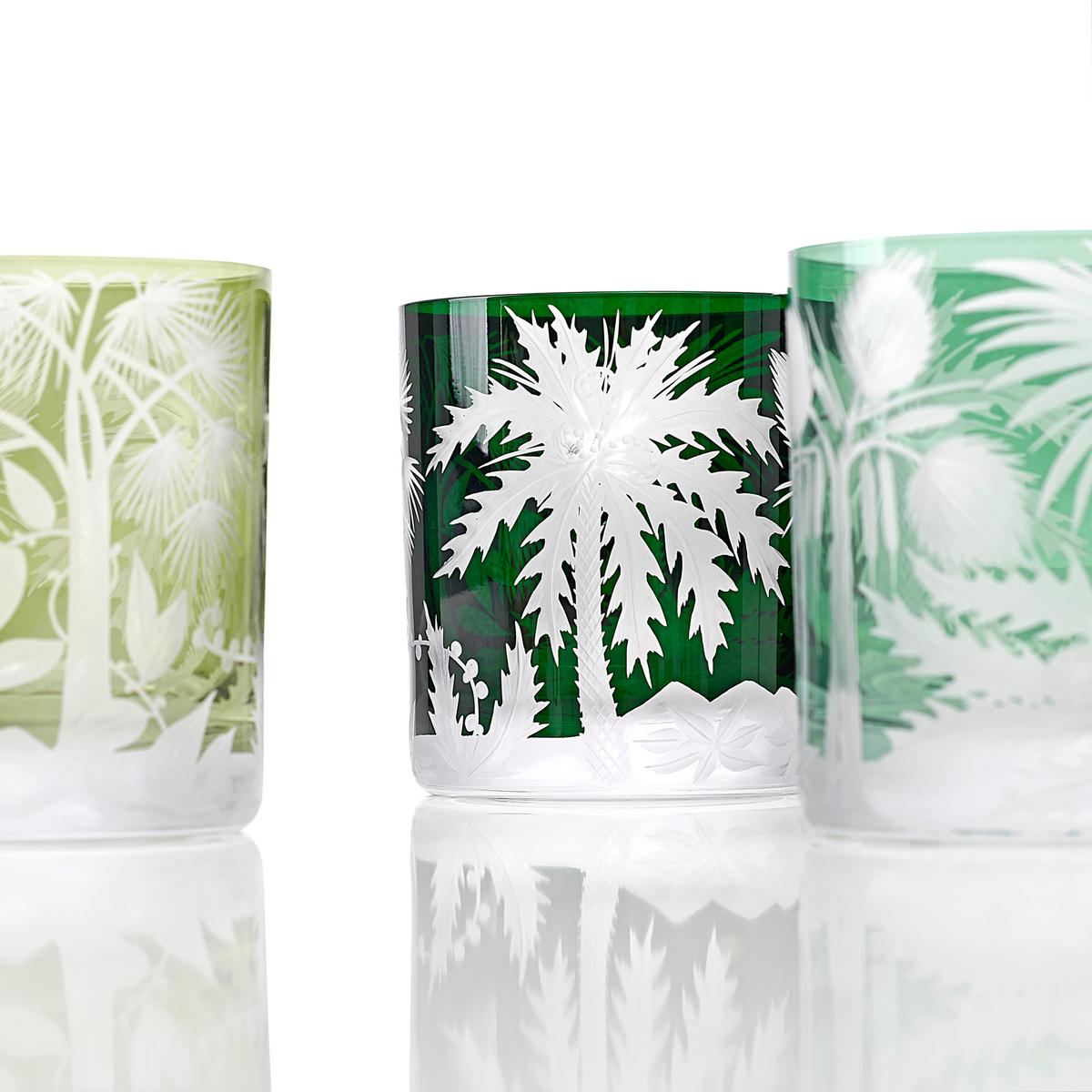 Each glass is mouth-blown and artistically hand-cut by Artel glass engravers in Prague. The fine air bubbles trapped in the glass are proof of the manual production and underline the individual character of the crystal glasses. The "Primeval Palms" double old fashioned tumblers are also available in further colours on request. Further glass shapes are also available in this design. We are happy to help.