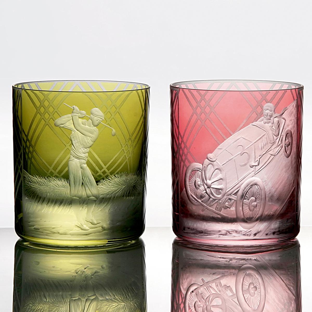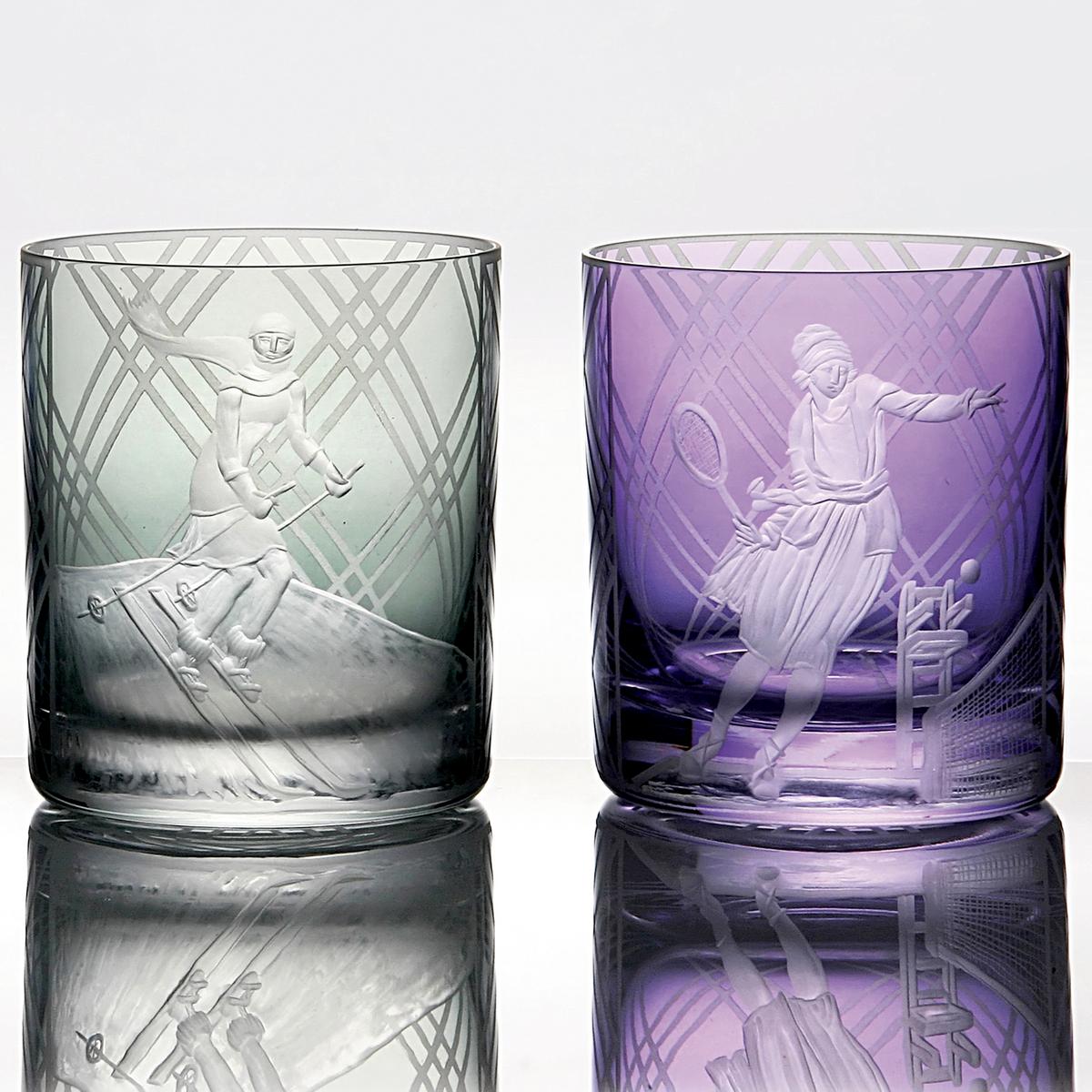 Anyone having a drink from one of the "Sporting Collection" glasses from Artel can be entertained at the same time. The six different double old fashioned tumblers show scenes from the sporting worlds of golf, grand prix, polo, rowing, ski and tennis during the 1920s. A classic car races over the thin crystal glass surface, an elegantly dressed woman meanders down the ski slope and two men row over choppy water ... Typical for the era of the "Golden Twenties", the sportsmen and sportswomen depicted on Artel's "Sporting Collection" are all stylishly dressed.