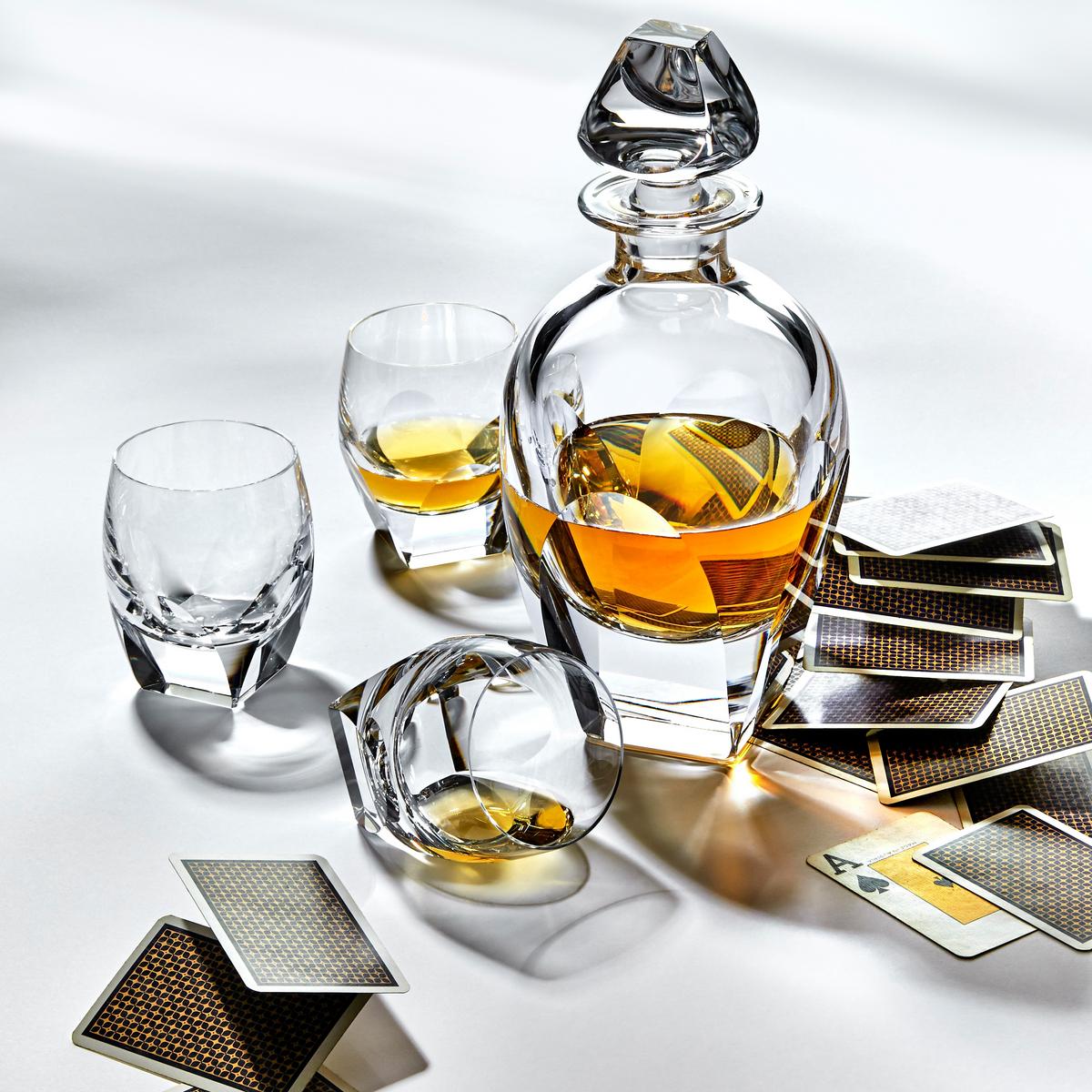 When designer Rudolf Eschler developed in 1934 the glasses and carafe for Moser’s "Bar" collection, he must have been very impressed by the Alps and the towering mountains: the shapes of the items are so reminiscent of rocky spurs and sheer cliff faces.