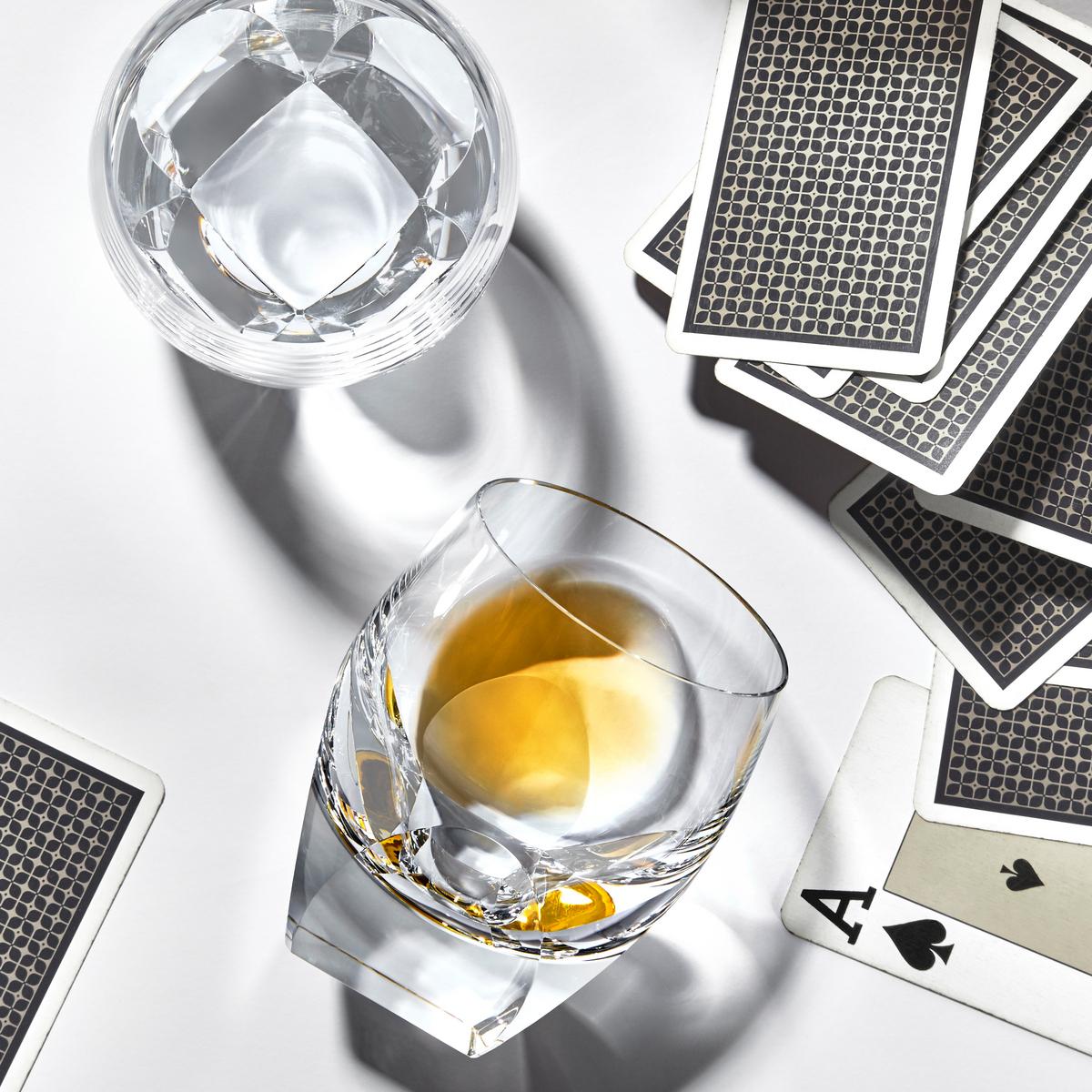 The glasses in Moser’s "Bar" series have heavy bases and an angular cut which gradually softens towards the mouth of the glass.