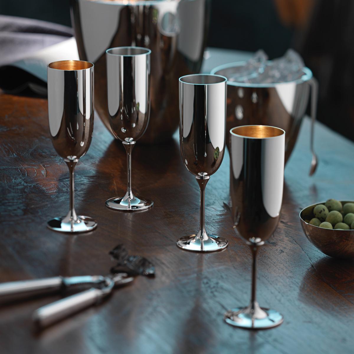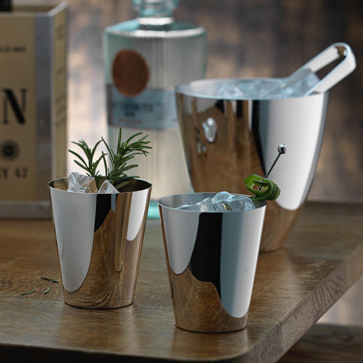 The "Dante" bar collection offers a very special stage for every drink and a pleasure for all the senses. With its silverplated bar tumblers, Robbe & Berking has again shown off its virtuoso skills. Simplicity and clarity set the tone for the "Dante" bar tumblers. A special highlight of the collection is the interior gilding of some of the noble drinking vessels.