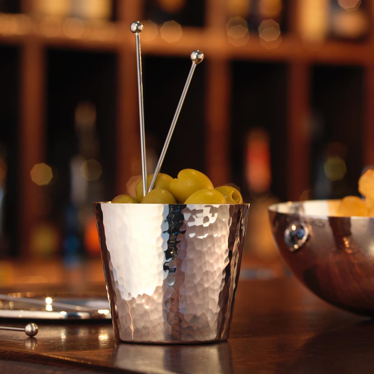 The "Martelé" bar collection offers a very special stage for every drink and a pleasure for all the senses. With its silverplated bar tumblers, Robbe & Berking has again shown off its virtuoso skills. The tumbler’s refined structure is achieved with a so-called "hammer finish", which each individual piece receives at the hand of the silver craftsmen at Robbe & Berking. The soft curves on the surface reflect the light in a hundred different ways.