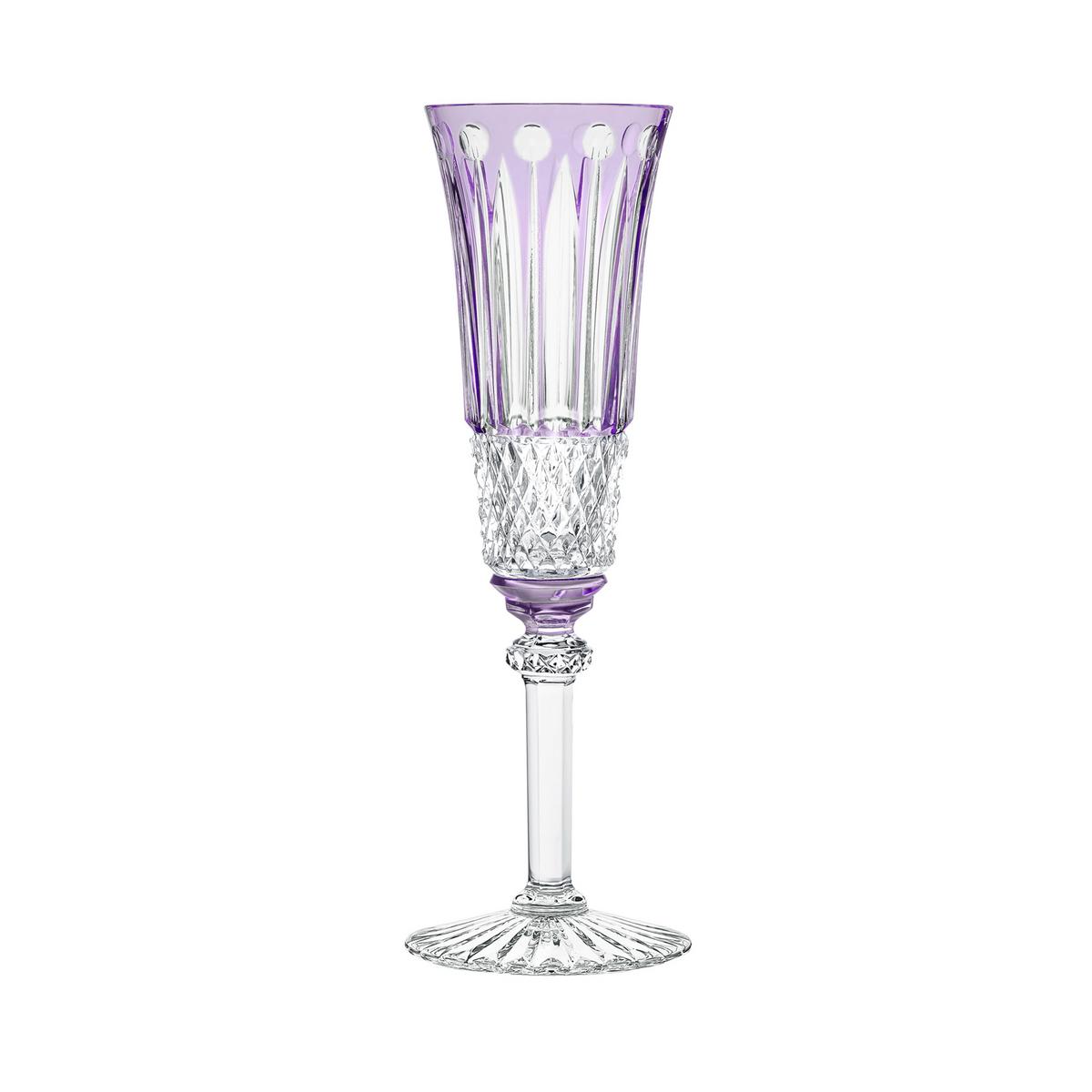 Richly detailed cutting makes the coloured crystal glasses glitter like diamonds. Indeed, to produce this effect, as many as three intricate glass-making techniques are necessary: facet cutting, ball cutting and diamond cutting. These Champagne flutes are part of the “Tommy” collection which is one of the most important and famous productions of the crystal glass manufactory Saint-Louis. This fame may also have been enhanced by a nice anecdote entwined around this classic series from the year 1928: on the occasion of a visit by King George VI, a “dinner” was given in the Hall of Mirrors at Versailles, and the place of each guest was set with eleven glasses from the “Tommy” series. Each of these glasses is still produced today in France’s oldest glass factory with all the traditional skill and precise craftsmanship. Further articles from the “Tommy” series can be viewed below.