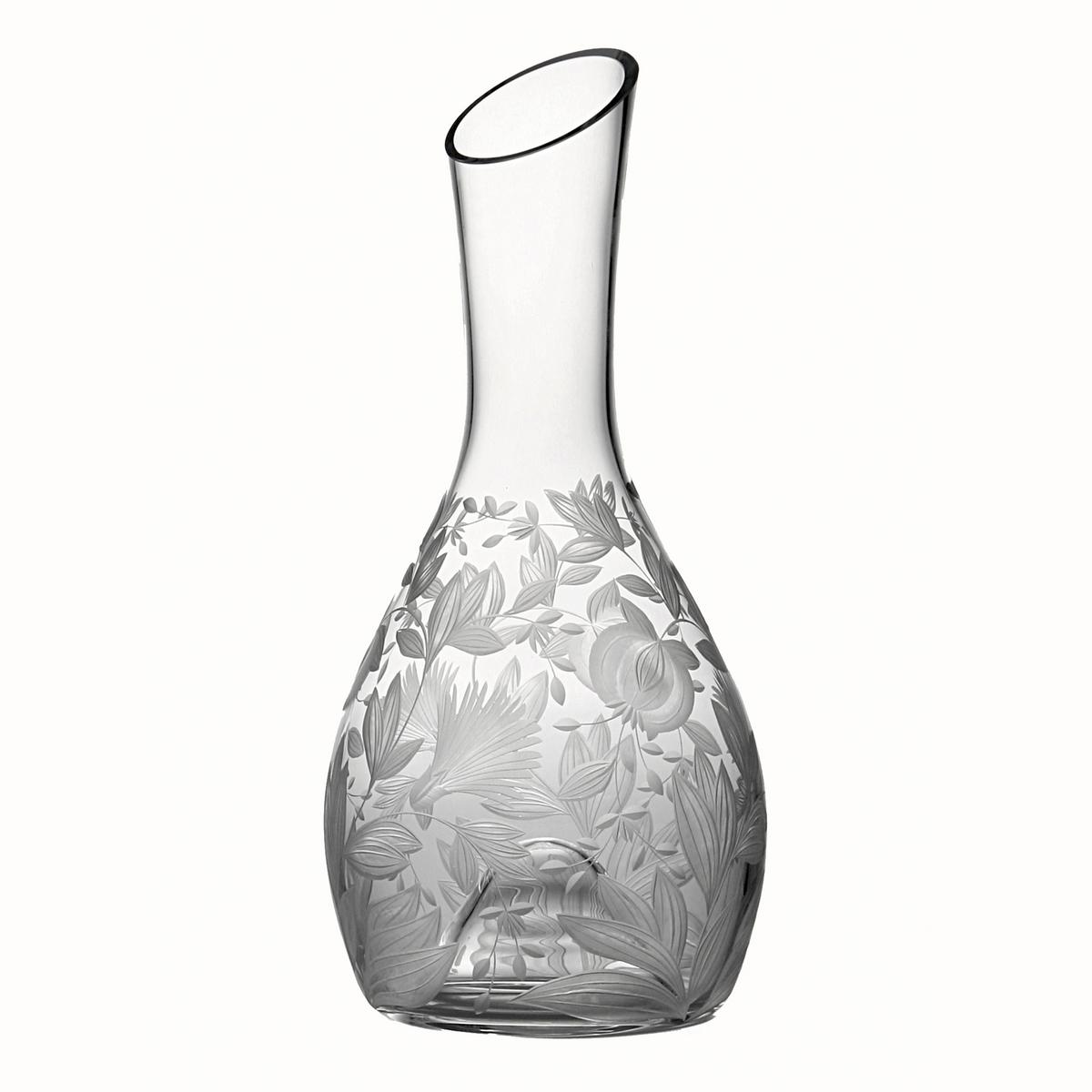 The crystal-clear "Verdure" wine carafe from Artel is clad in a kind of tightly cut "lace dress". The pattern on the "Verdure" carafe was inspired by the imaginative wallpaper designs of Dagobert Peche, an Austrian artist regarded as a master of ornament. The glass blowers of the Prague-based manufactory Artel have very skilfully turned the pattern into a crystal artwork, which they have drawn up to the neck of the bottle. This makes it appear particularly delicate.