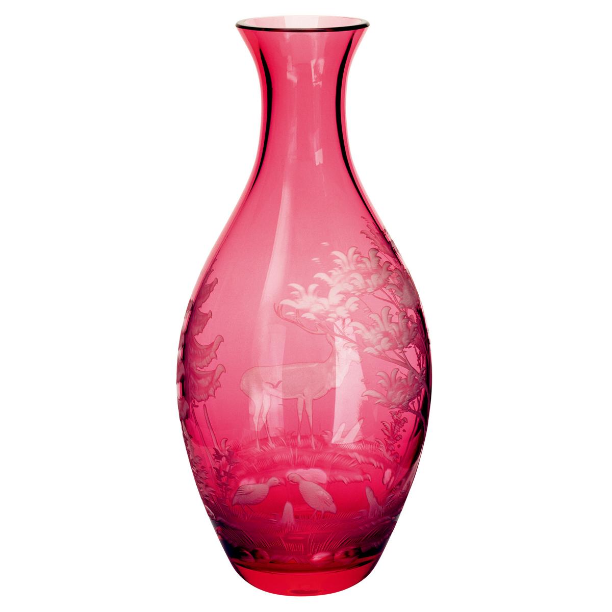 "Schliersee" carafe, fuchsia, pattern stag & partridge by Theresienthal