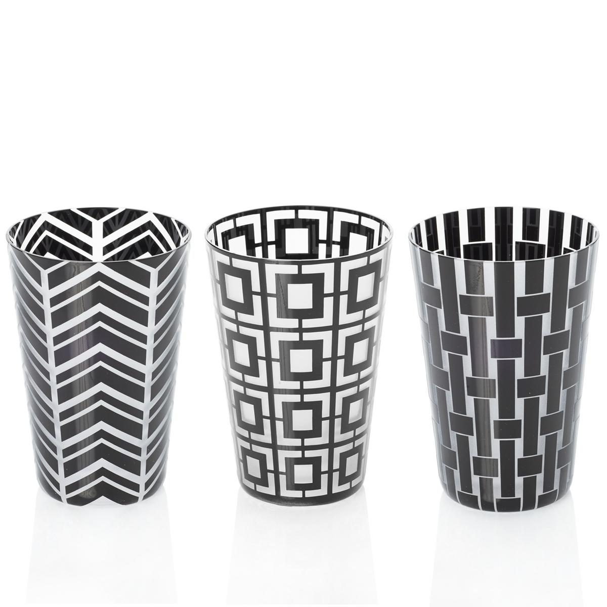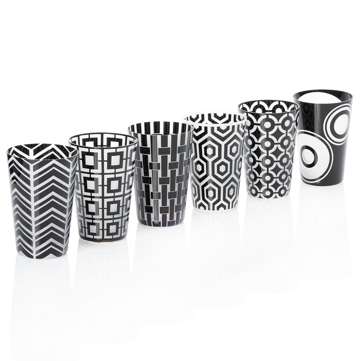 Abstract, simple, black and masterly. This "Graphic Collection" set of six crystal glass tumblers from Artel provides an attractive cross-section of the modern graphic design at the Prague manufacturer. The selected tumblers go perfectly together and come from well-known and popular ranges of Artel glassware. The retro charm of the "Mod" and "Weave" tumblers meets up with the modern graphic décor of the "Saturn" and "Herringbone" ranges. The "Graphic Collection" from Artel is complemented by the attractive geometric design of the "Hexagon" and "Polka Dots" glasses.