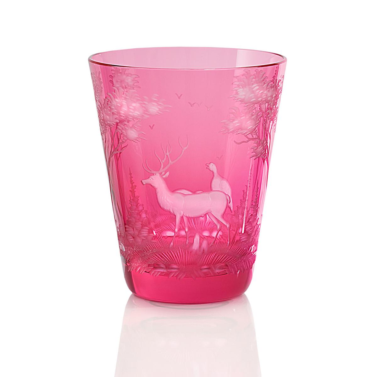 The colourful "Schliersee" tumblers from Theresienthal are engraved with wild animals from Europe. Deer, fox and ibex can be discerned in the luminous colours. The special production method makes the animals look particularly vivid and alive.