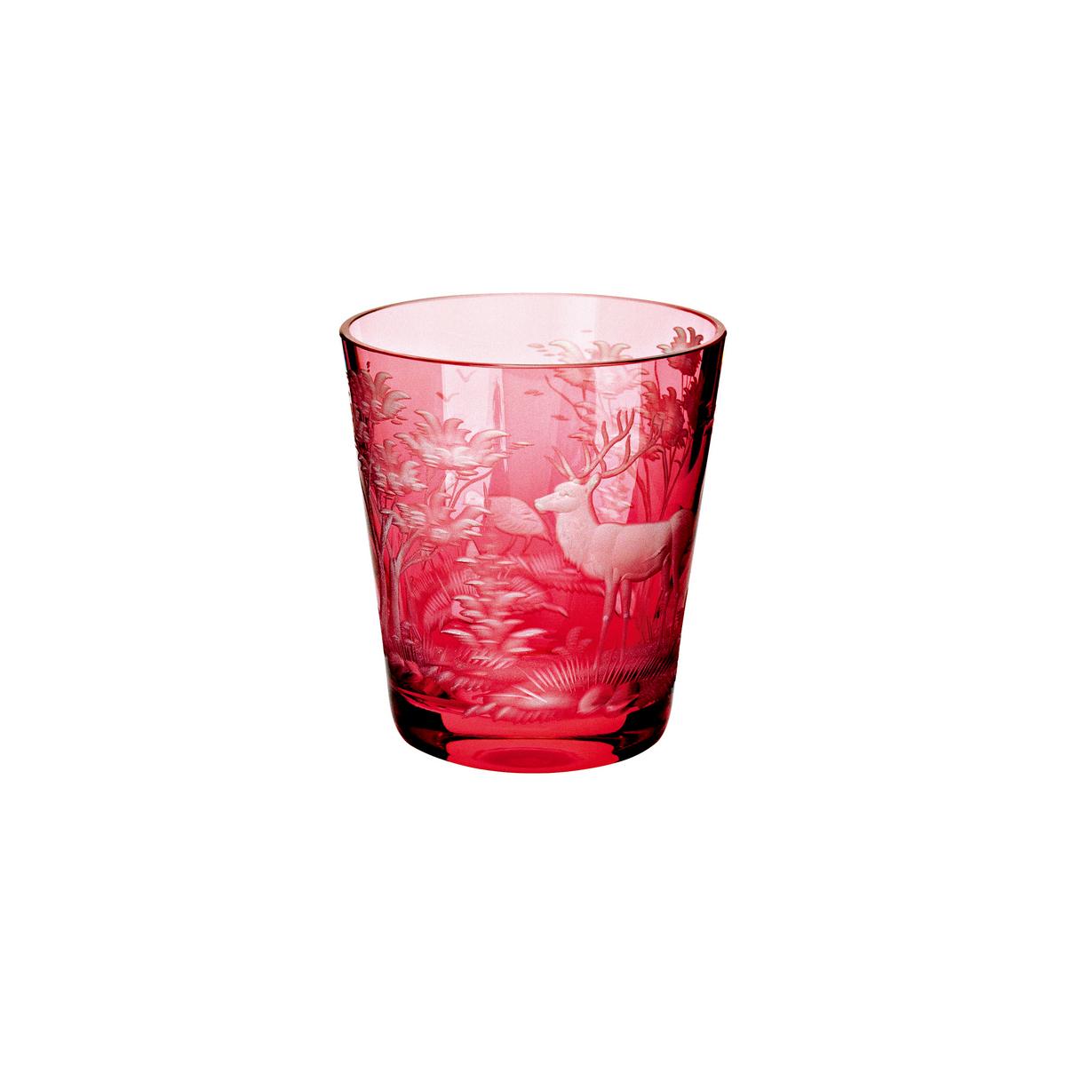 The colourful "Schliersee" tumblers from Theresienthal are engraved with wild animals from Europe. Deer, fox and ibex can be discerned in the luminous colours. The special production method makes the animals look particularly vivid and alive.