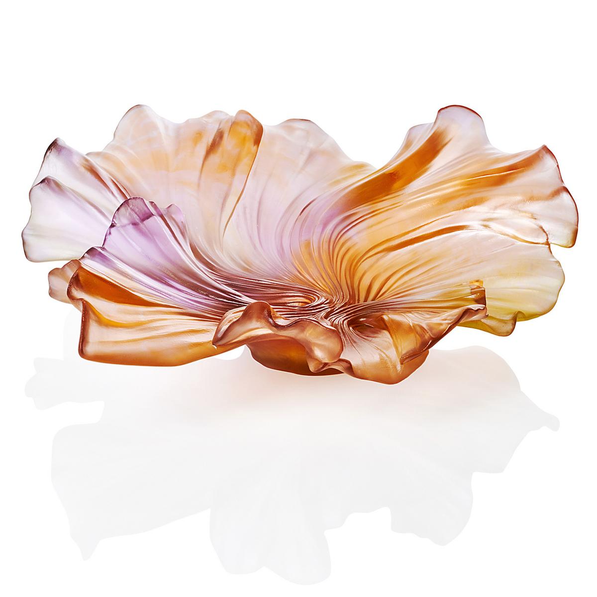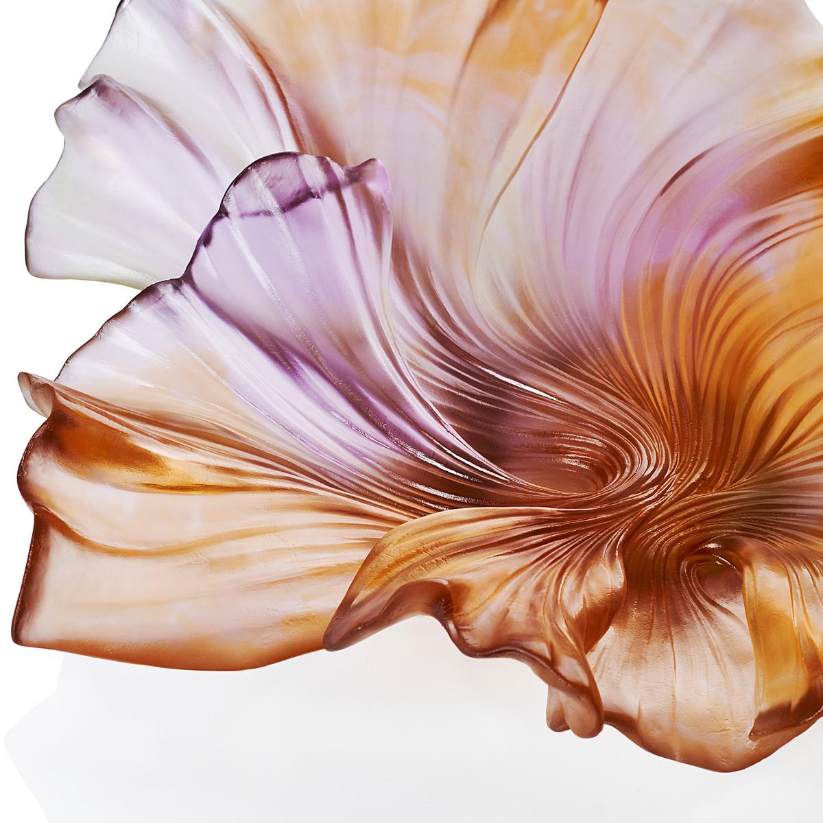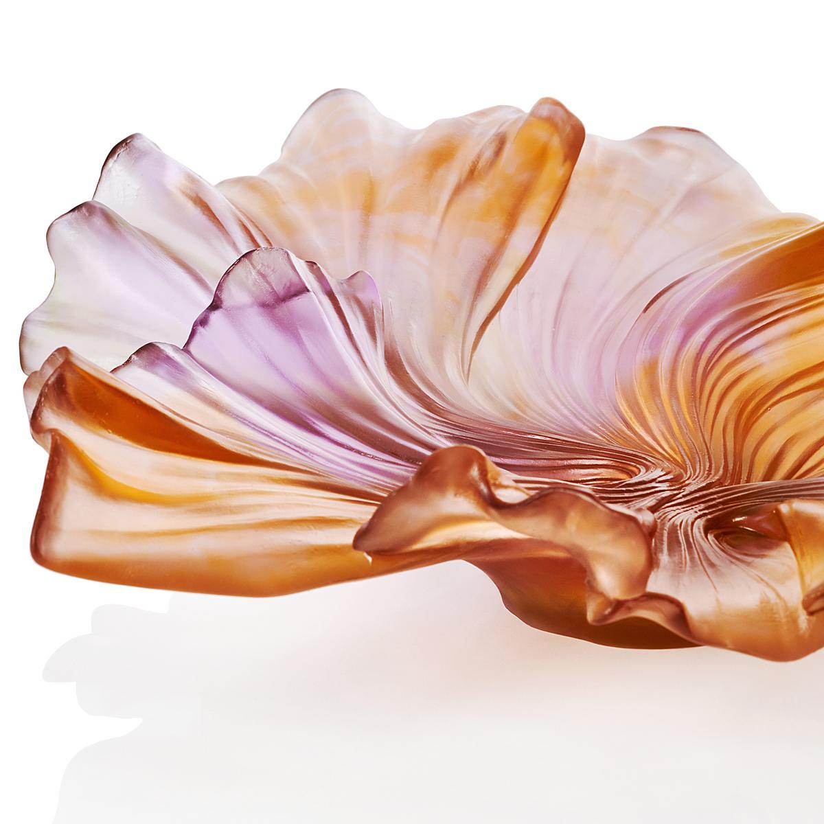 The "Croisière" bowl in shades of green, rose and orange looks like the swirling fabric of an airy dress. This impression makes the decorative bowl a distinctly romantic piece. The flowing and graceful curves give the impression of an almost floating crystal object.