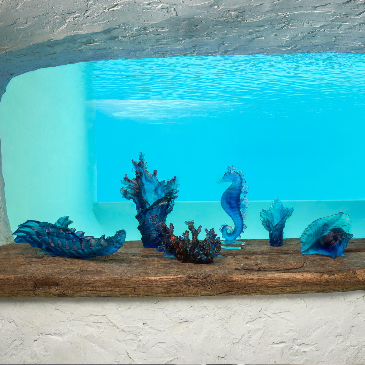 From decorative objects to works of art, each piece of the "Mer de Corail" collection gives us a glimpse of an incredible marine fauna and flora. With this collection, Daum presents timeless and immortal pieces depicting the most beautiful treasures of the Mediterranean underwater world.