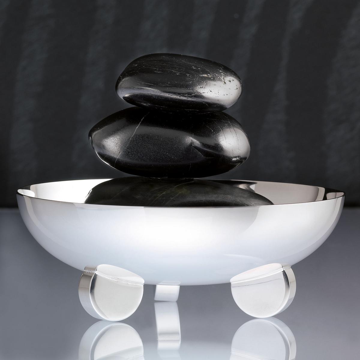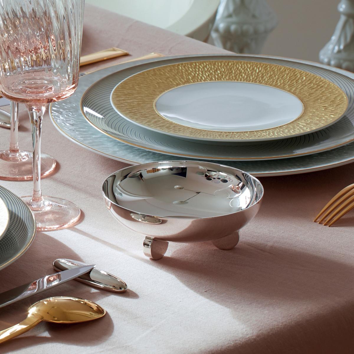 The three little feet of the "Galet" bowls by Ercuis were inspired by the smooth shape of pebbles. Hence the name: "Galet" which is the French name for pebbles. The silverplated bowl from the French silversmith Ercuis is available in two sizes.