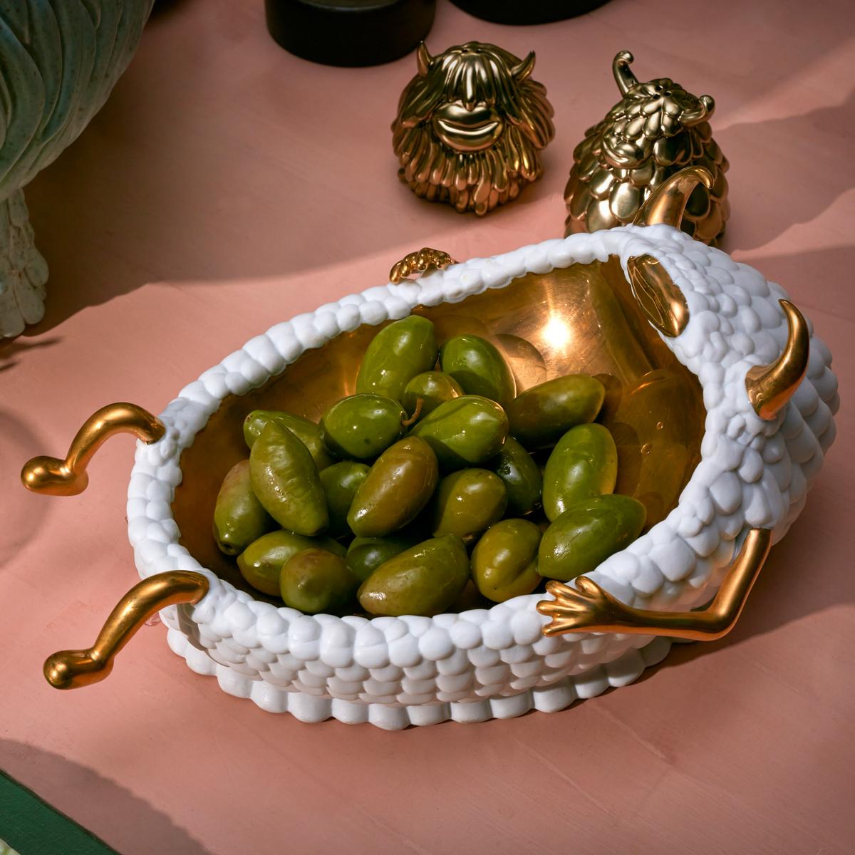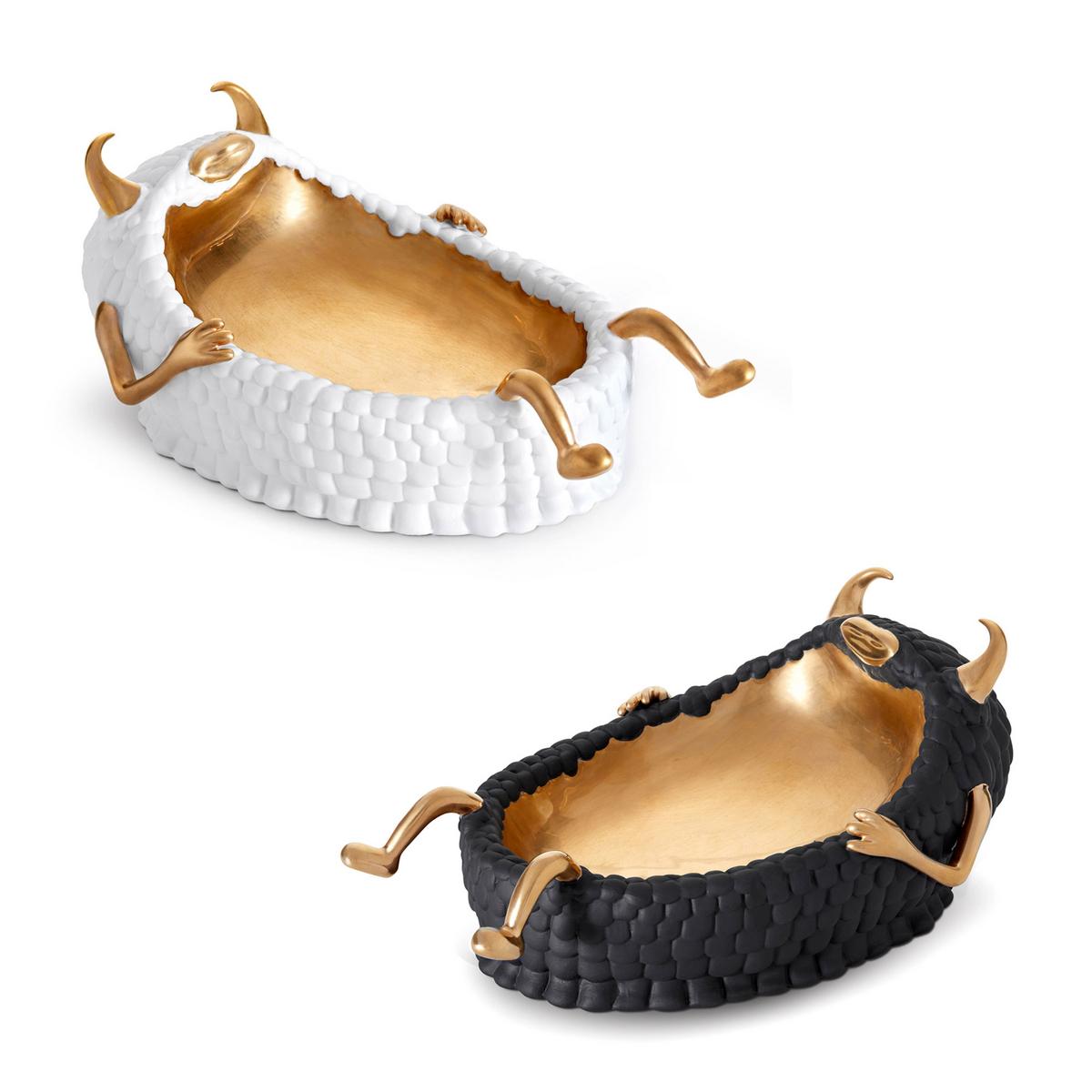 The "Lazy Susan" bowls can be a whimsical decorative object on the desk or a small candy bowl on the table. In any case, they make their viewer smile. The little "Lazy Susan" monsters come from the Haas Brothers collection by L'Objet. This extraordinary collection, in which monsters play the leading role, was created in collaboration with the Los Angeles-based artists Simon and Nikolai Haas.