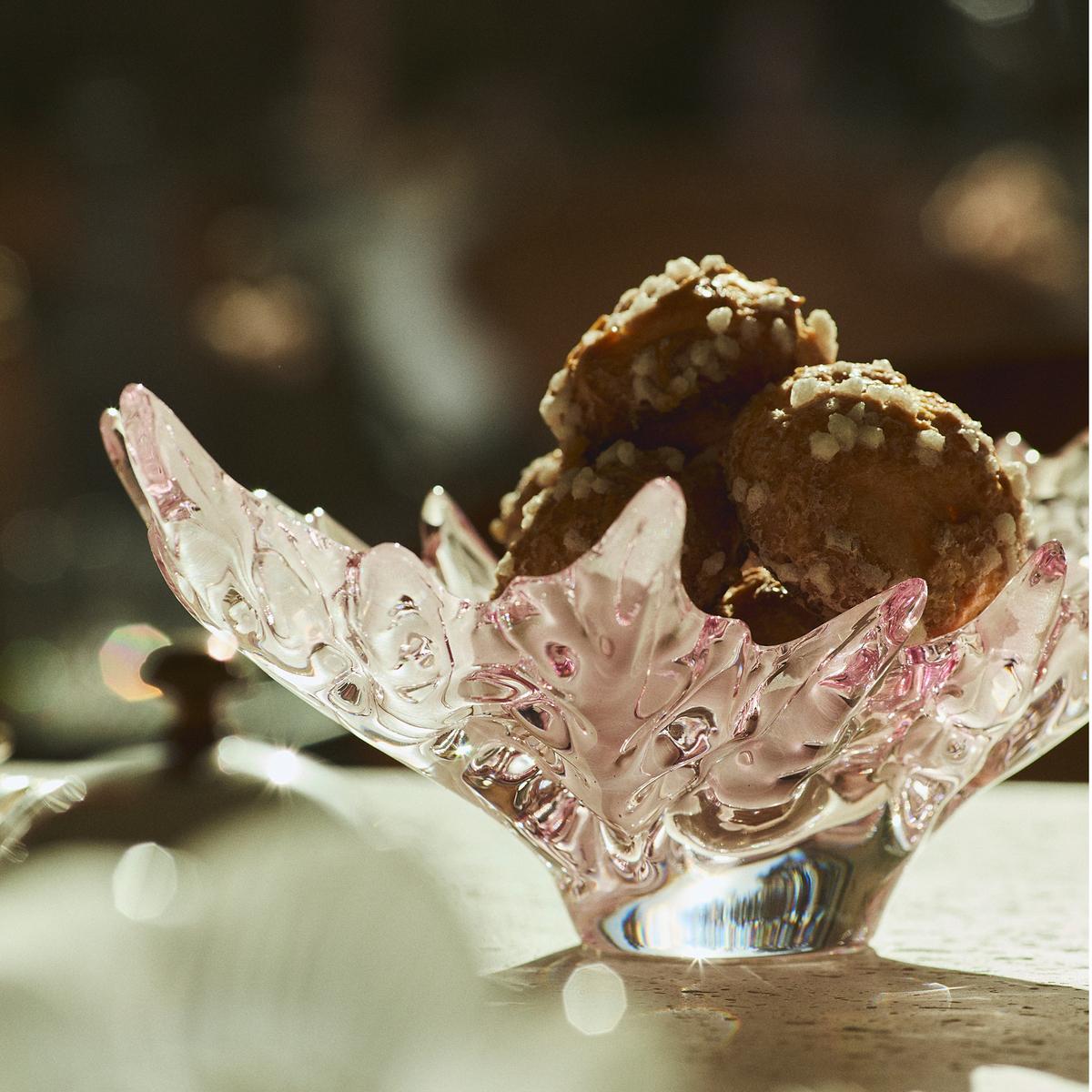 René Lalique became famous because, unlike any other glass designer, he was able to capture nature within his creations. The "Champs-Elysées" bowls are perfect examples of Lalique’s craftsmanship. They look as if they are chestnut leaves that have somehow turned into crystal glass, and yet nature merely supplied the pattern. The edges of the glass leaves curl gently upwards so that they can retain any little delicacies placed in the bowl.