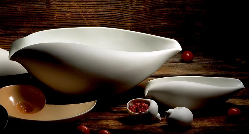 "It is thanks to the experience and skill of the craftsmen working at the Nymphenburg porcelain factory that we are able to realise ideas that few others would dare", explains designer Ted Muehling, who thought up a stunning collection for this German company, famous for its long tradition of producing the finest porcelain. This skill is clearly reflected in these volute bowls. Their fine lines and perfect proportions clearly reflect the technical virtuosity of the Nymphenburg craftsmen. These decorative objects of matt bisque porcelain have a glazed interior and are available in two sizes. (Photographs by Don Freeman).