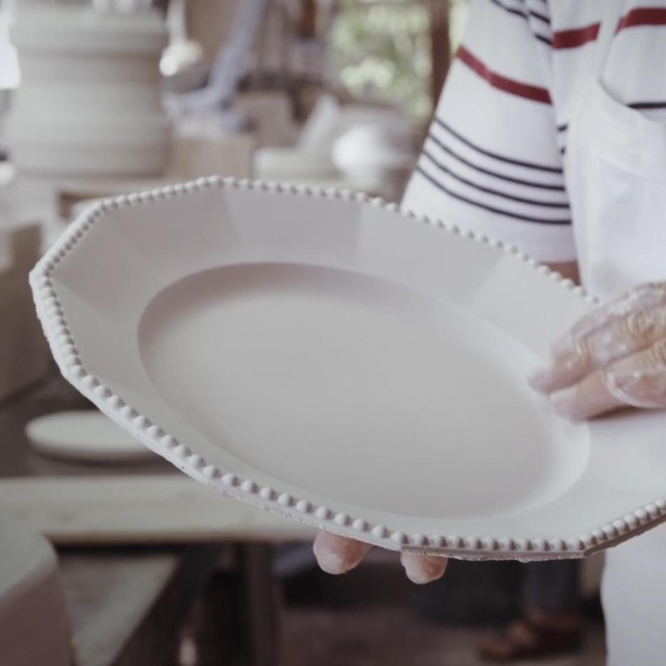 Buy products below- Handicraft, white bisque exterior/white glazed interior.