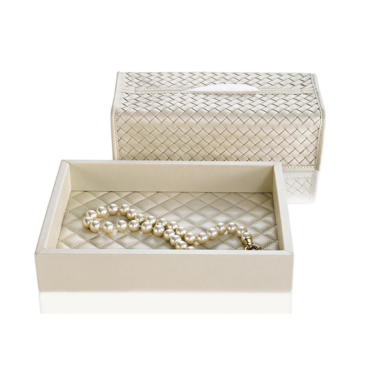 • "Vanity" leather vide-poche, rectangular broad, ivory