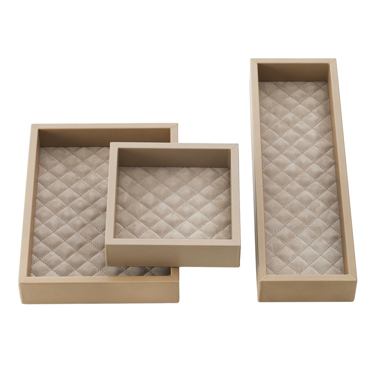 • "Vanity" leather vide-poche, rectangular narrow, taupe