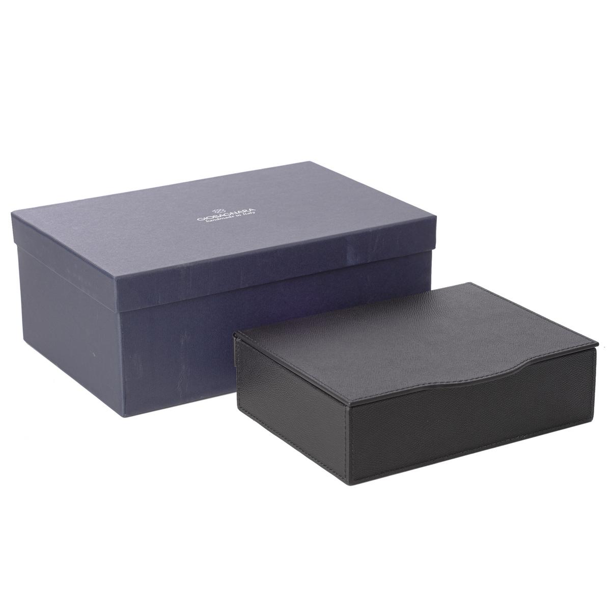 The "Luna" boxes from GioBagnara are versatile ornaments which can be used for a wide variety of tasks in the office or bedroom. Small utensils such as pens or cosmetic articles are concealed from view because the boxes all have a hinged lid. Beneath the water- and scratch-resistant leather is a firm wooden body. The leather is specially treated to ensure that you will enjoy using the product for many years to come. The "Luna" boxes are crafted entirely by hand at the GioBagnara works in Italy.