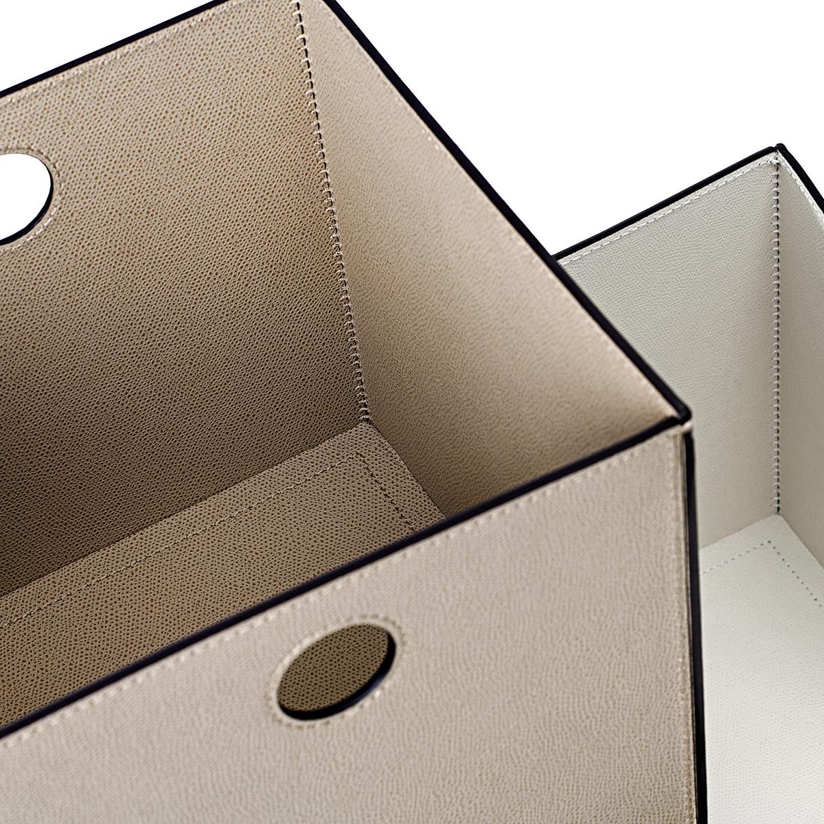 The "Marea" storage baskets by GioBagnara are made of calfskin and are a particularly elegant organisational aid. For example they can store all your bathing utensils or they can keep small towels tidily stored in readiness for guests. These square leather baskets also provide a decorative way of storing away other everyday articles. The water and scratch proof leather surfaces makes these baskets from GioBagnara ideal for everyday use.