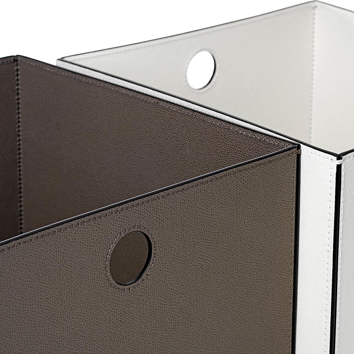 The "Marea" leather baskets by GioBagnara are available in two sizes and different colours. The leather containers are manufactured by hand in the Italian manufactory GioBagnara. On request, the leather is available in further colours. Please just enquire with us.