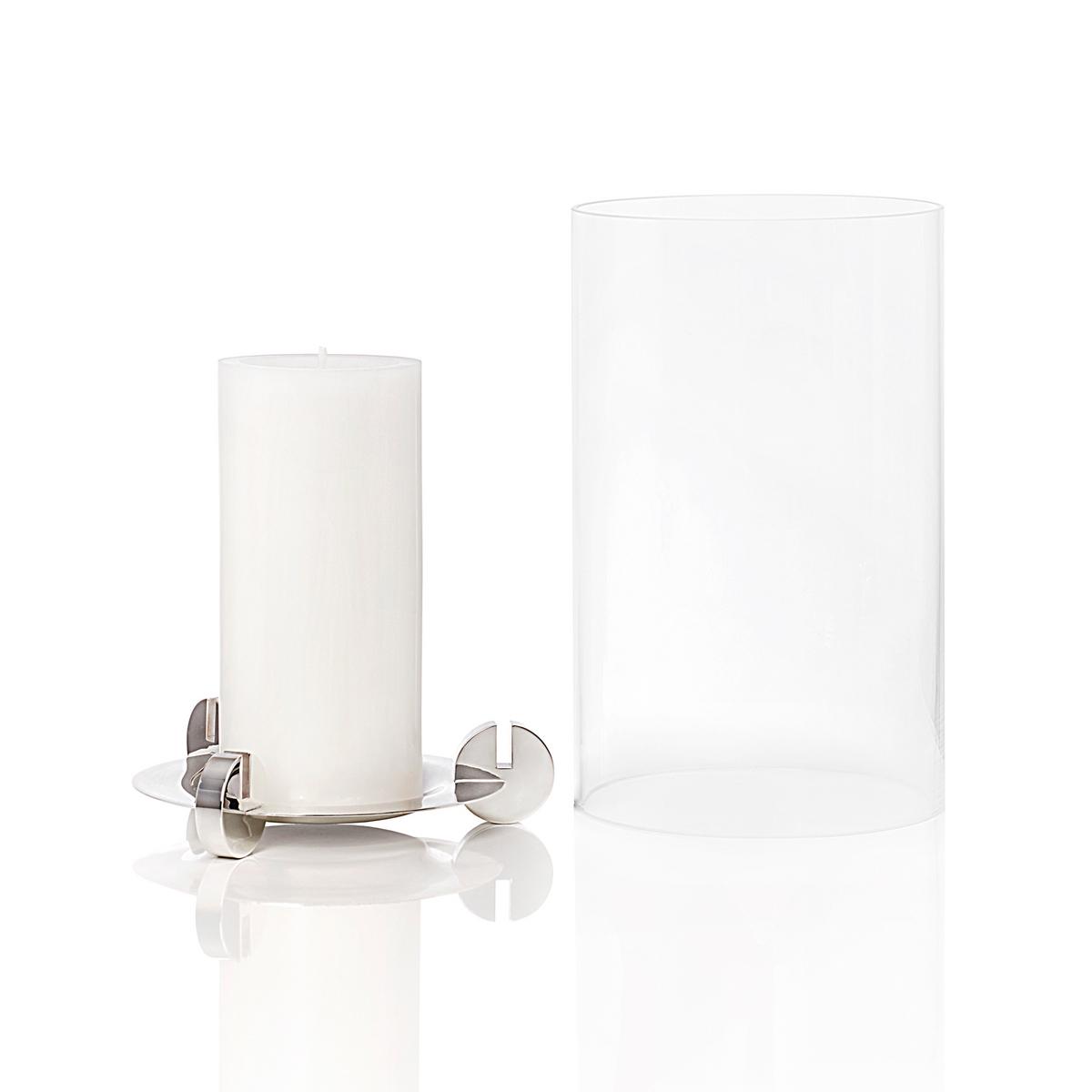 The "Galet" hurricane lamp from Ercuis is the ideal companion on a warm summer evening on the terrace or balcony. The shape of the three silverplated feet is inspired by that of a pebble, which is where the name for this lamp came from: "Galet" is the French word for a pebble. A burning candle is well protected behind the clear glass of the Ercuis lamp and, as well as being highly attractive, can provide its light to best advantage. The "Galet" hurricane lamp from Ercuis includes candles.