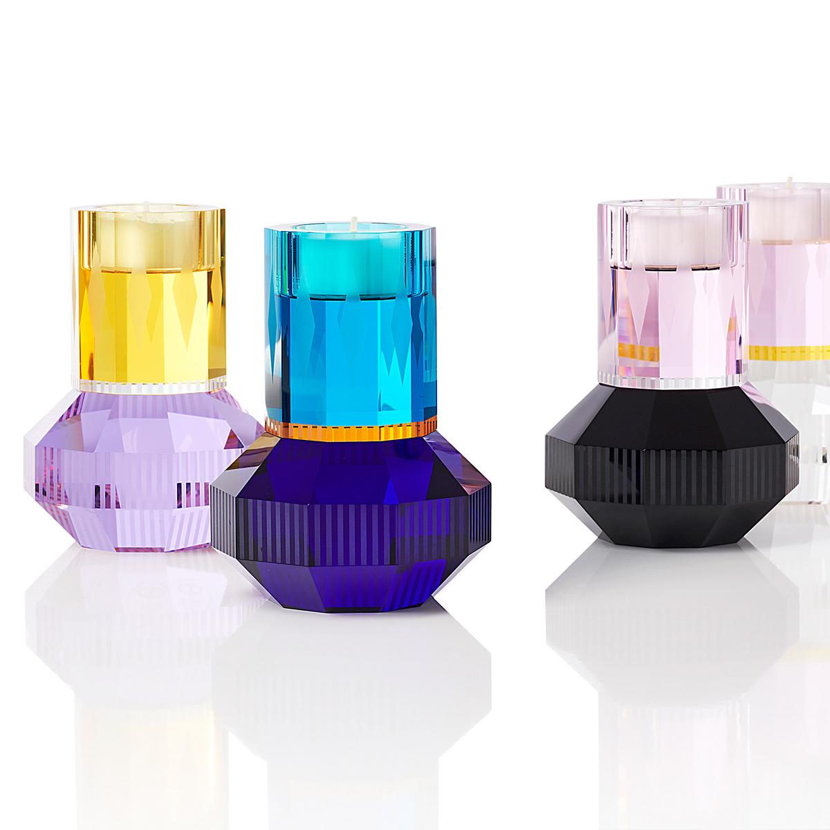 The "Chicago" tea light holders by Reflections Copenhagen are artistic mini-sculptures made of fine hand cut crystal glass. The 13 cm high tea light holders are surprisingly heavy for a stable stand. Their clear geometric shapes are reminiscent of the majestic elegance of Art Déco. Satin details and intense colours in bold combinations exude a contemporary aesthetic.