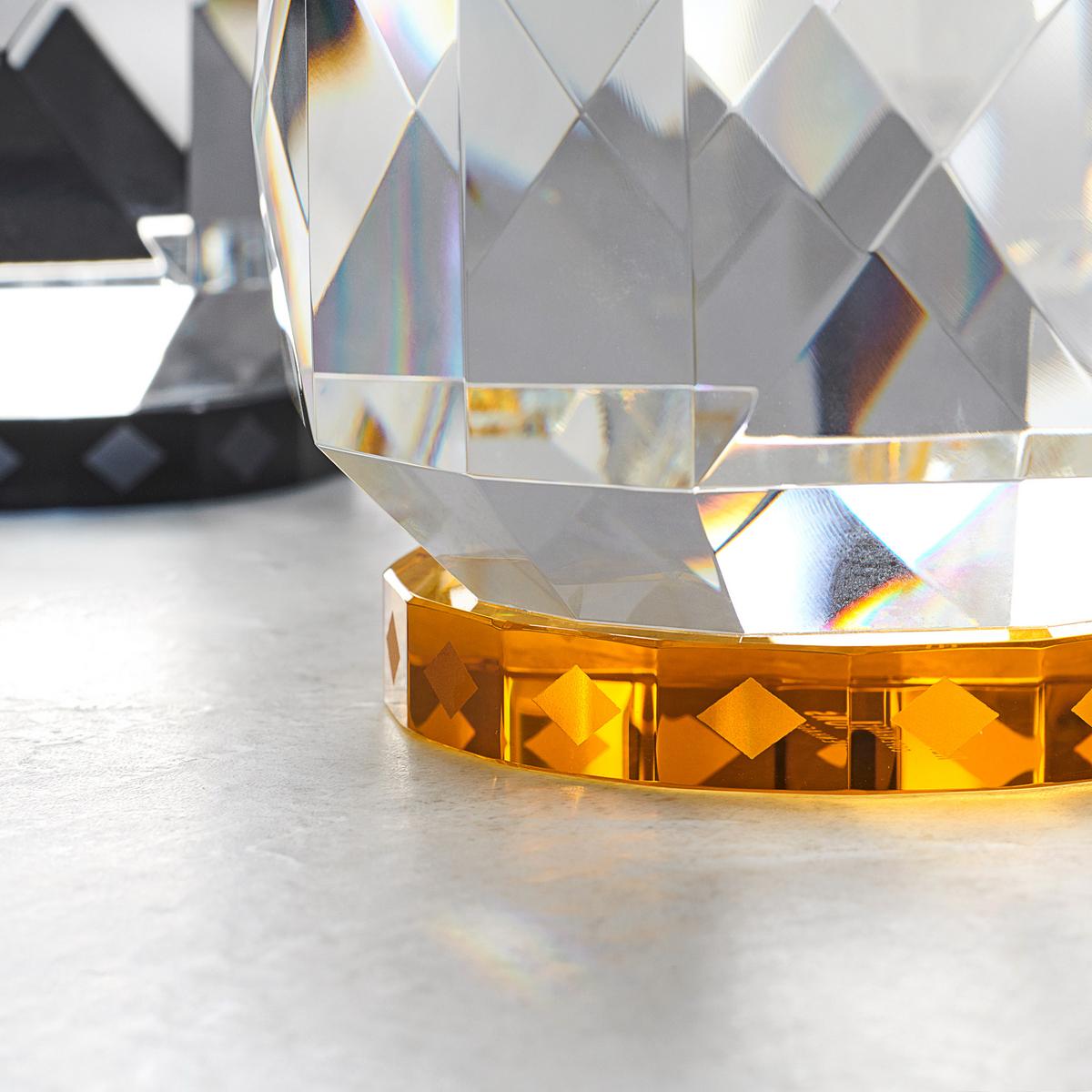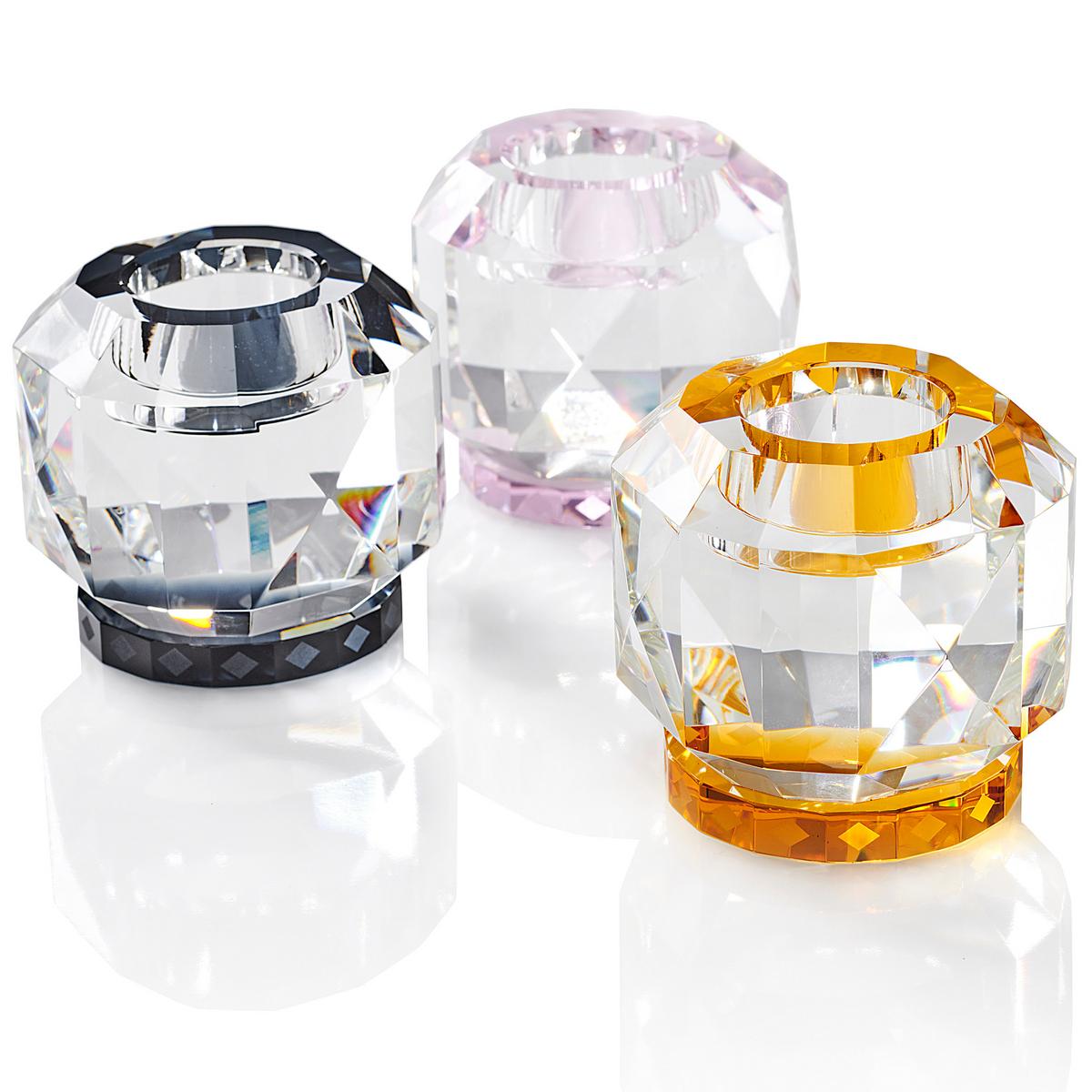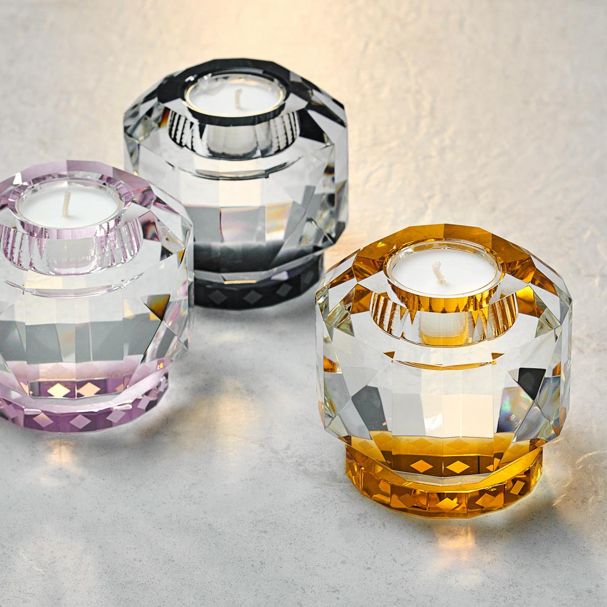 The "Texas" tea light holders by Reflections Copenhagen play with the unique properties of hand-cut crystal. The crystal tea light holders are not quite 8 cm (3.15") tall. They are composed of a crystal-clear, facetted dome and a vividly coloured base. The intense colours of the base travel through the crystal, creating countless reflections in the facets of the dome. A lively play of light and colour that invites you to view it from every angle.