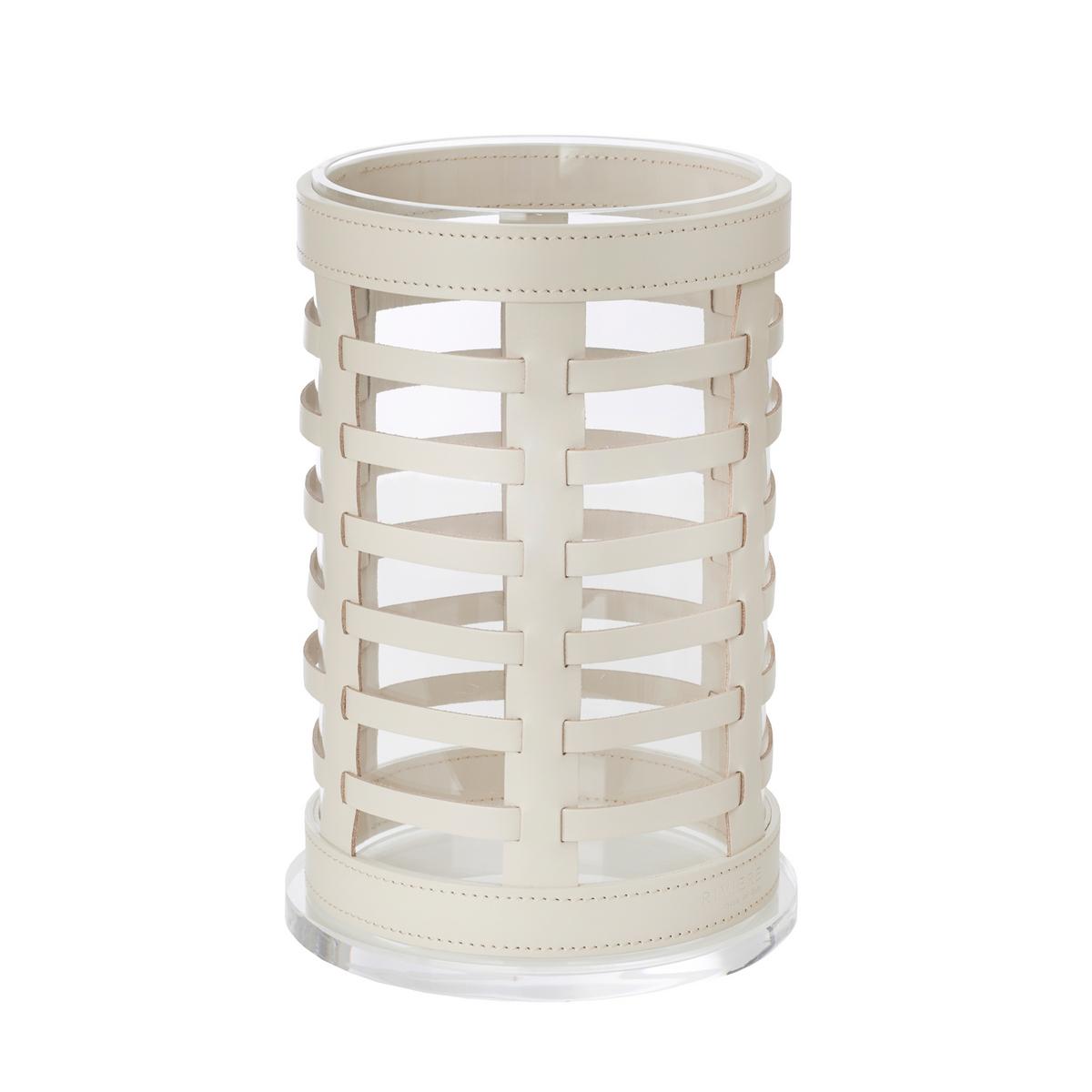 The leather is extremely soft and covers the lanterns made of Plexiglas. It is handcrafted with great craftsmanship and suitable for outdoor use thanks to a special layer on the surface. However, you should take care to protect the high-quality leather products from permanent moisture, such as continuous rain.