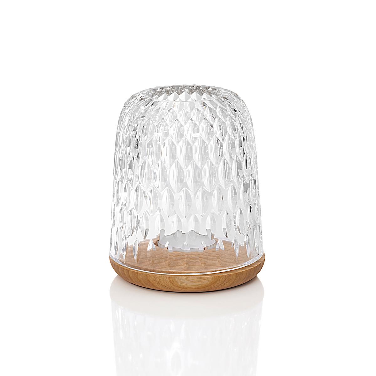 The "Folia" votives were inspired by the surroundings in which they are produced ‒ the woods around the production site of Saint-Louis in Lorraine, France. It is here that the Saint-Louis manufactory produces their precious crystal glass gems. It was these woods that provided the designer Noé Duchaufour-Lawrance with the inspiration for the "Folia" collection. His idea was to combine the normally cool-looking crystal glass with warm ash wood. The conical cut decorating the votive takes its inspiration from the shape of a leaf.