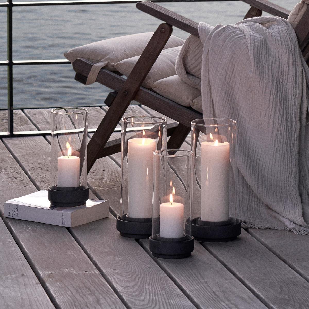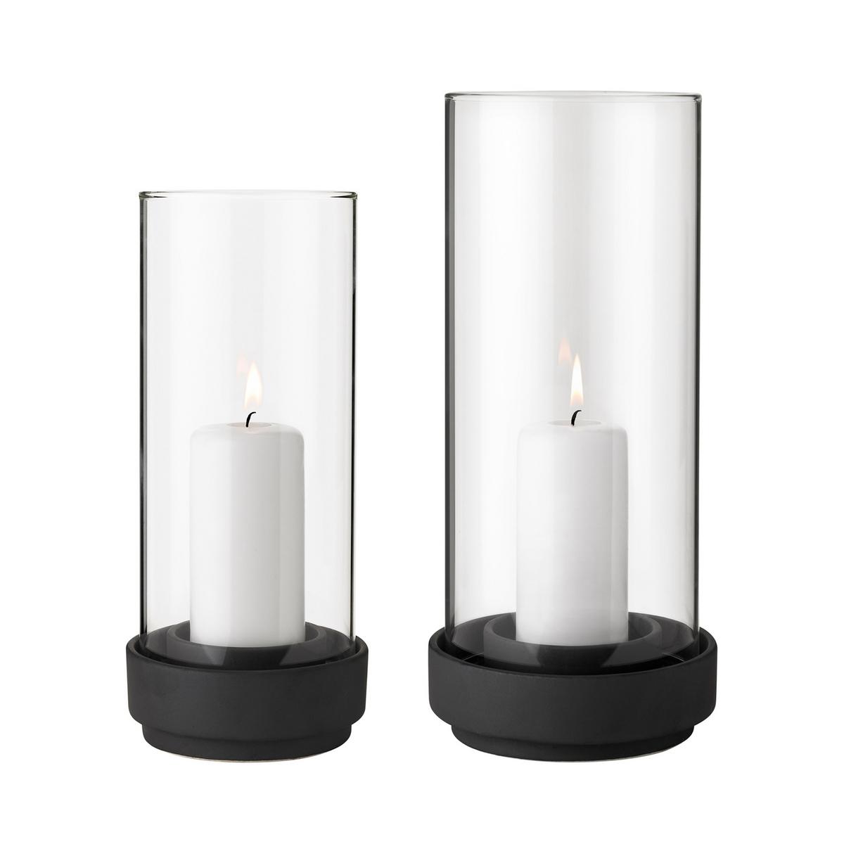 The industrial designer Maria Berntsen has designed the "Classic" lanterns for the traditional Danish company Stelton. The puristic glass lanterns are suitable for both indoor and outdoor use. If the lantern is forgotten in the rain, the thoughtful design ensures that the rainwater can escape all by itself. The lantern base is made of black stoneware. The lanterns are weatherproof and can be used outdoors even in cold sub-zero temperatures.
