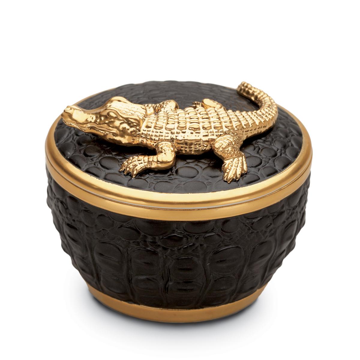The "Crocodile Gold" scented candle from L’Objet gives a completely new meaning to the 2-in-1 idea. Its candle lies concealed within a luxurious porcelain pot made of black porcelain, seemingly covered in alligator leather, parts of which have also been gilded by hand. Perched majestically on the lid is a lifelike reproduction of a crocodile totally refined with gold.