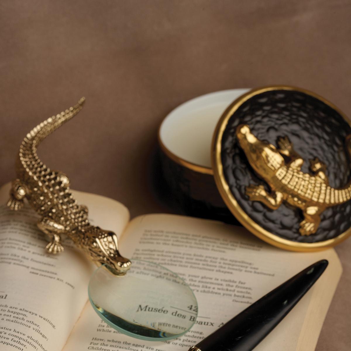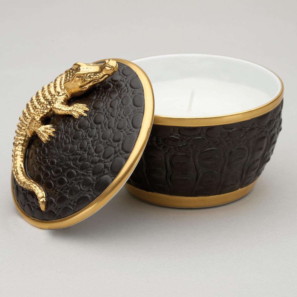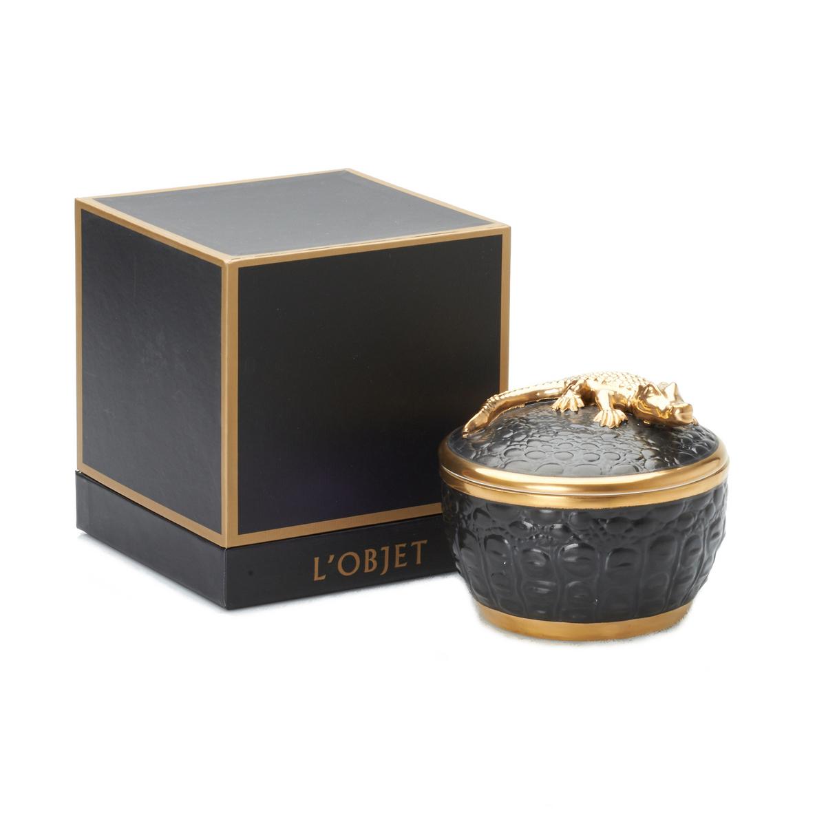 The "Crocodile Gold" scented candle from L’Objet is supplied in a beautiful gift box.