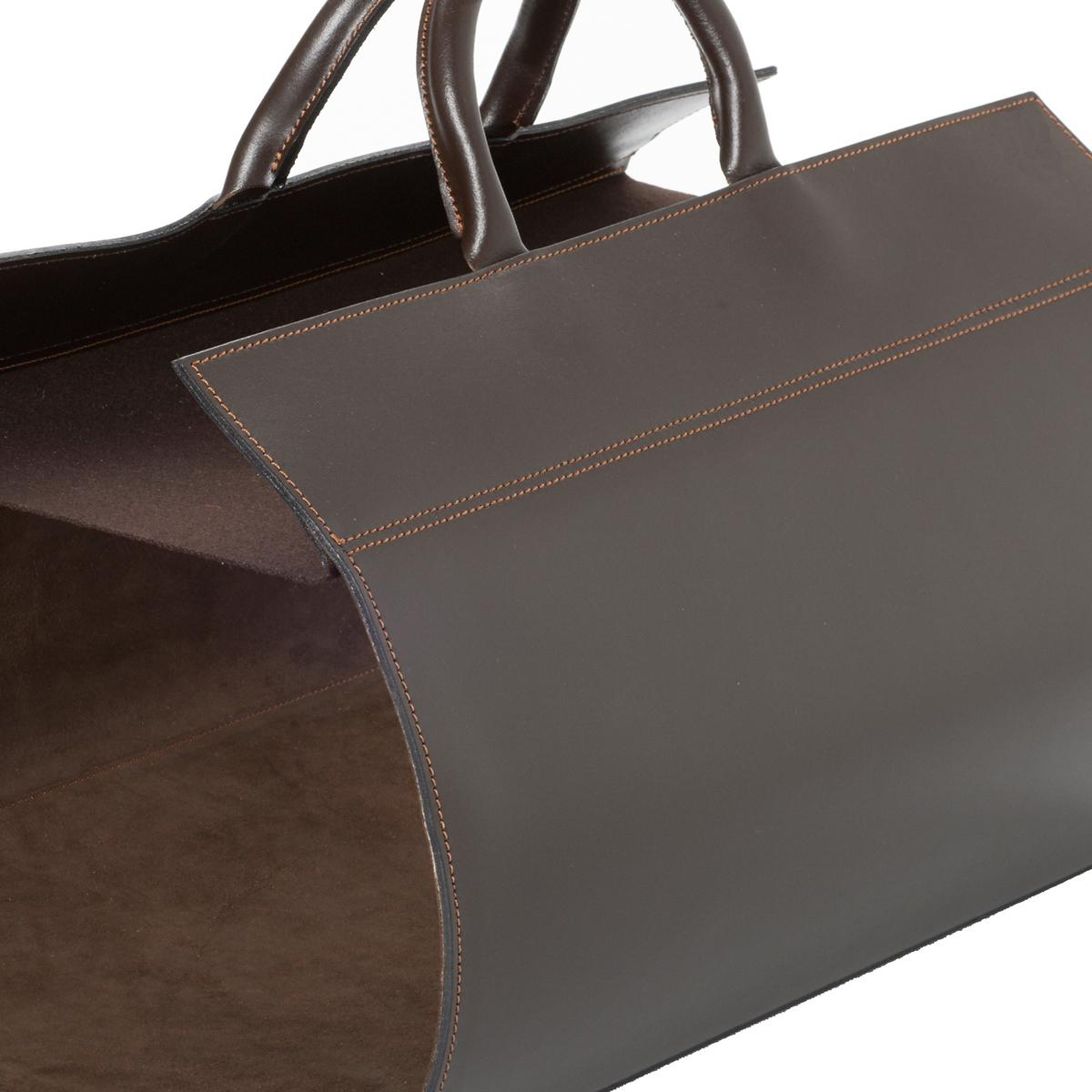 The calf leather "Pyrenees" log holder performs its work both efficiently and stylishly. It fulfils its practical function when it carries the logs from outside to the fireplace. And its decorative purpose is fulfilled when it stands in the room for a few days so that the damp wood can dry.