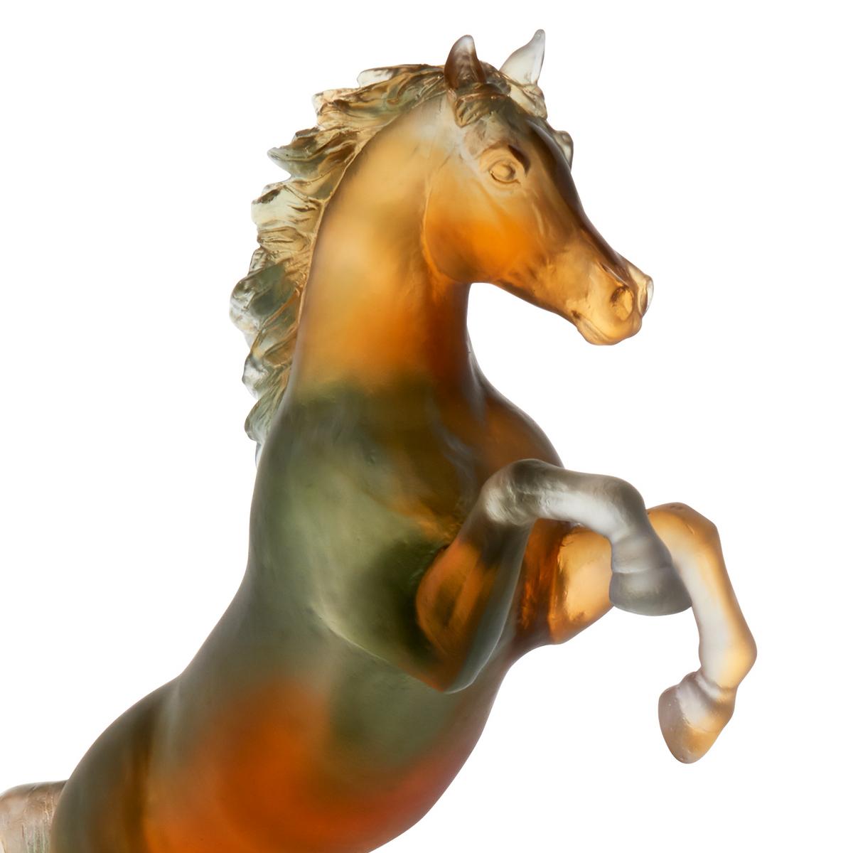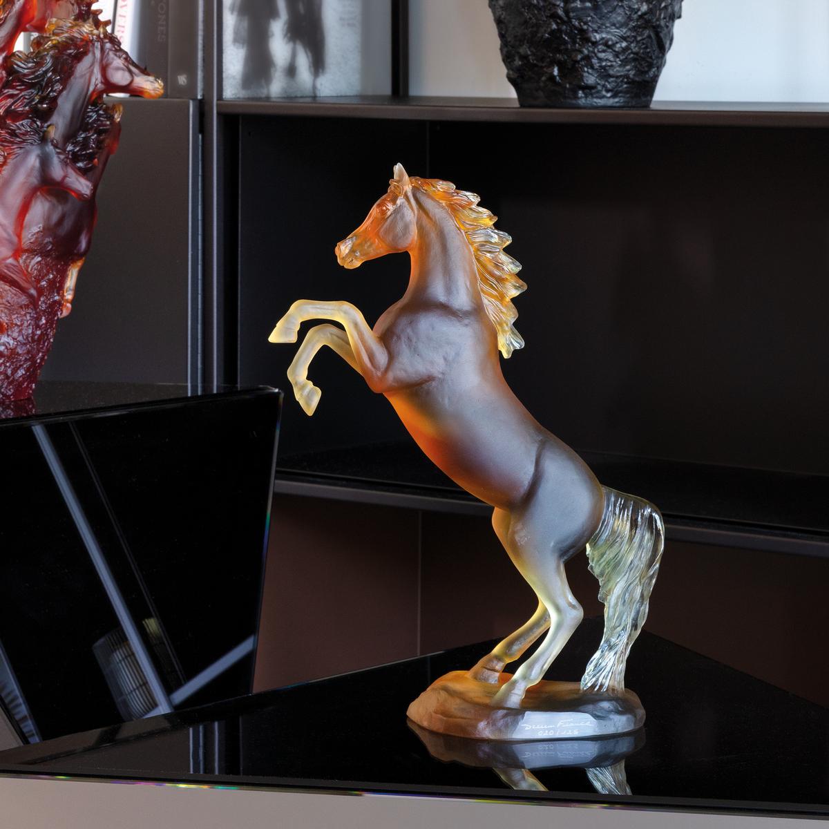 The "Cheval fougueux" sculpture by Daum is one of a series of extraordinary art objects. Translated, the name means "passionate horse", which is not surprising as this decorative object is so powerful and imposing. The Arabian horse inspired the designers of Daum. The Arabian horse is considered the oldest and most original horse breed and comes from Mesopotamia. It is known for its fiery spirit, agility and courage.