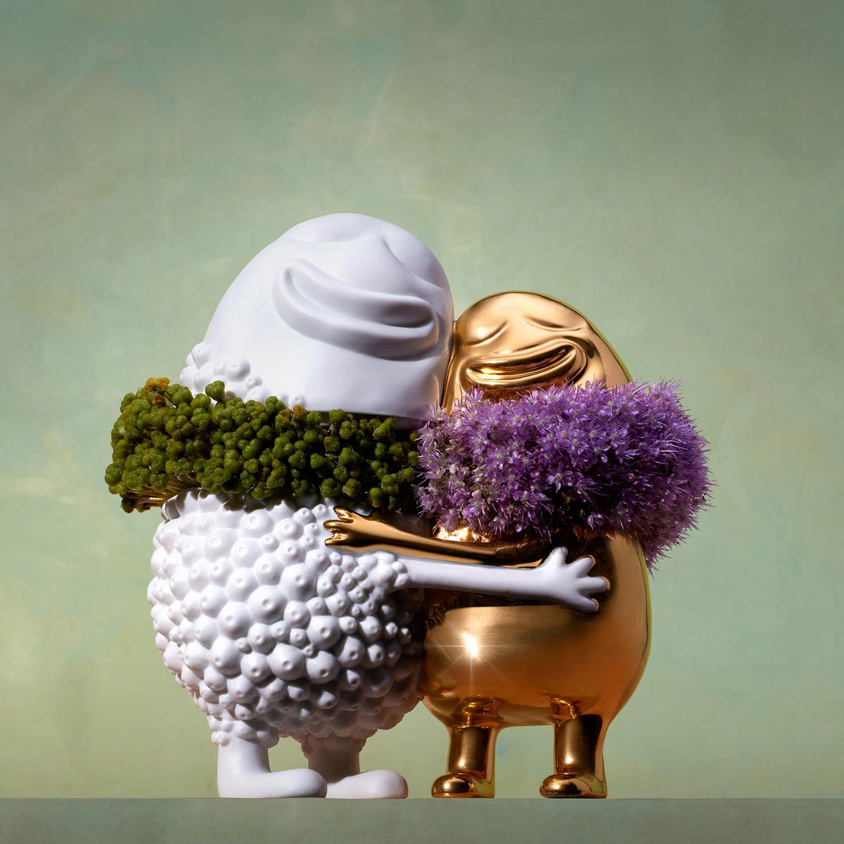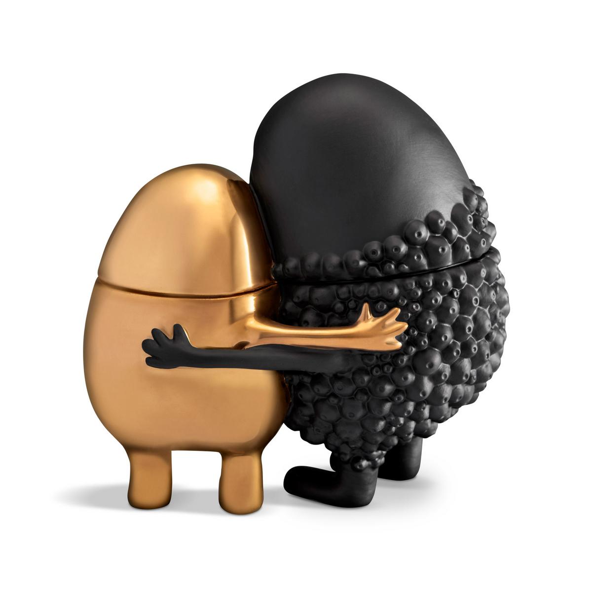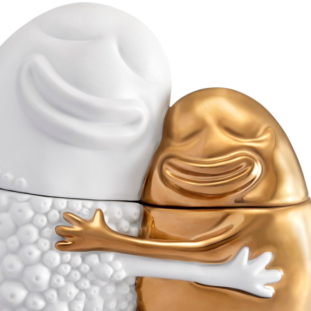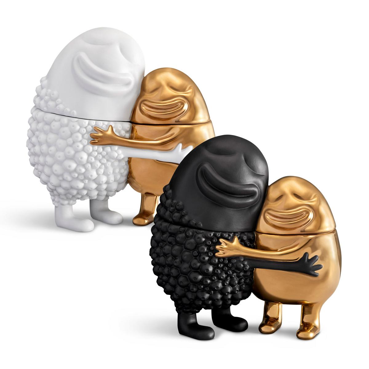 The porcelain "Huggers" boxes belong to the Haas Brothers collection by L'Objet. This extraordinary collection is a meeting of creative minds and skilled hands. Inspired by the otherworldly landscape of Joshua Tree, Los Angeles-based artists Simon and Nikolai Haas worked in close collaboration with the master craftsmen at L’Objet to create a collection that spans tableware, home décor, textiles and fragrance. Together, they have brought to life a family of characterful monster creatures with the highest quality of finish and function.