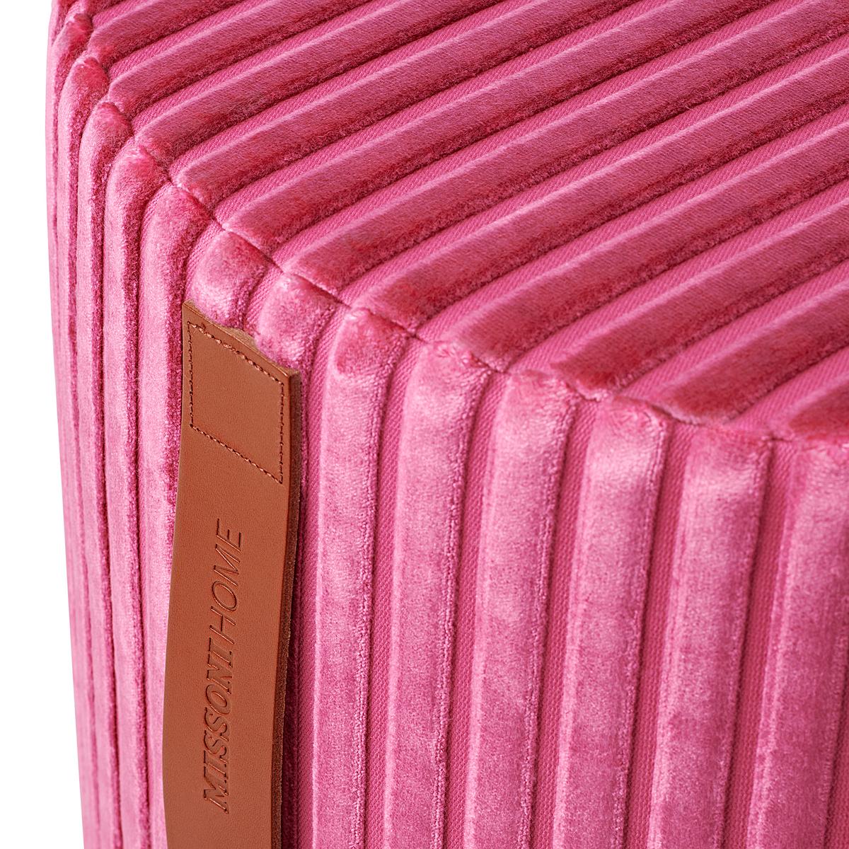 A beautiful pouf is a little multi-talent that can be used in a wide variety of ways as a seat or side table. Thanks to the leather handle the "Coomba" pouf by Missoni Home is very handy, because it can always be carried to where it is needed. The "Coomba" collection by Missoni Home is characterized by a plain stripe design and a velvety textured surface. The viscose in the fabric provides a shiny surface. Due to their sleek design, the "Coomba" poufs can be wonderfully combined with further Missoni Home cushions or plaids.
