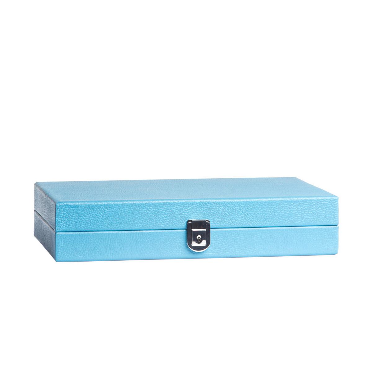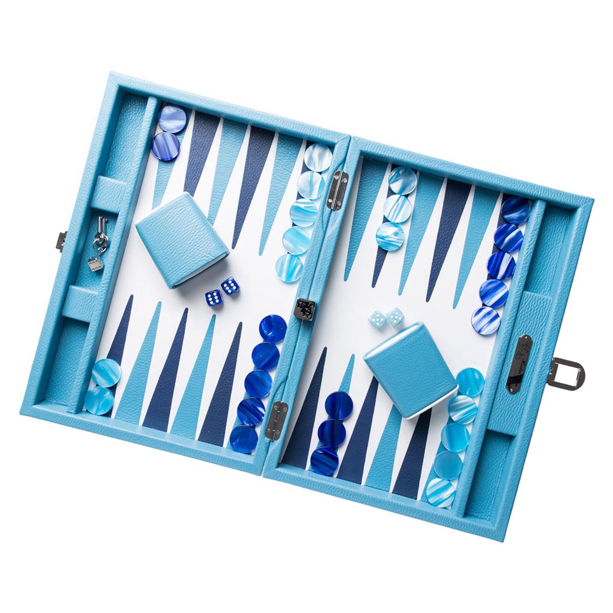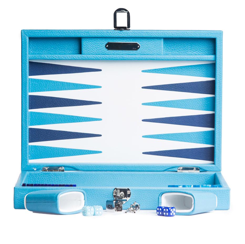 The "Buffalo" backgammon game from Hector Saxe gives a whole different meaning to the "art of the game": This board game has such a sophisticated design that it could also be described as art. The little case has the finest buffalo leather inside and out, chrome-plated nickel clasps, acrylic checkers and dice with rounded edges, a metal doubling cube plus dice shakers made of buffalo leather.