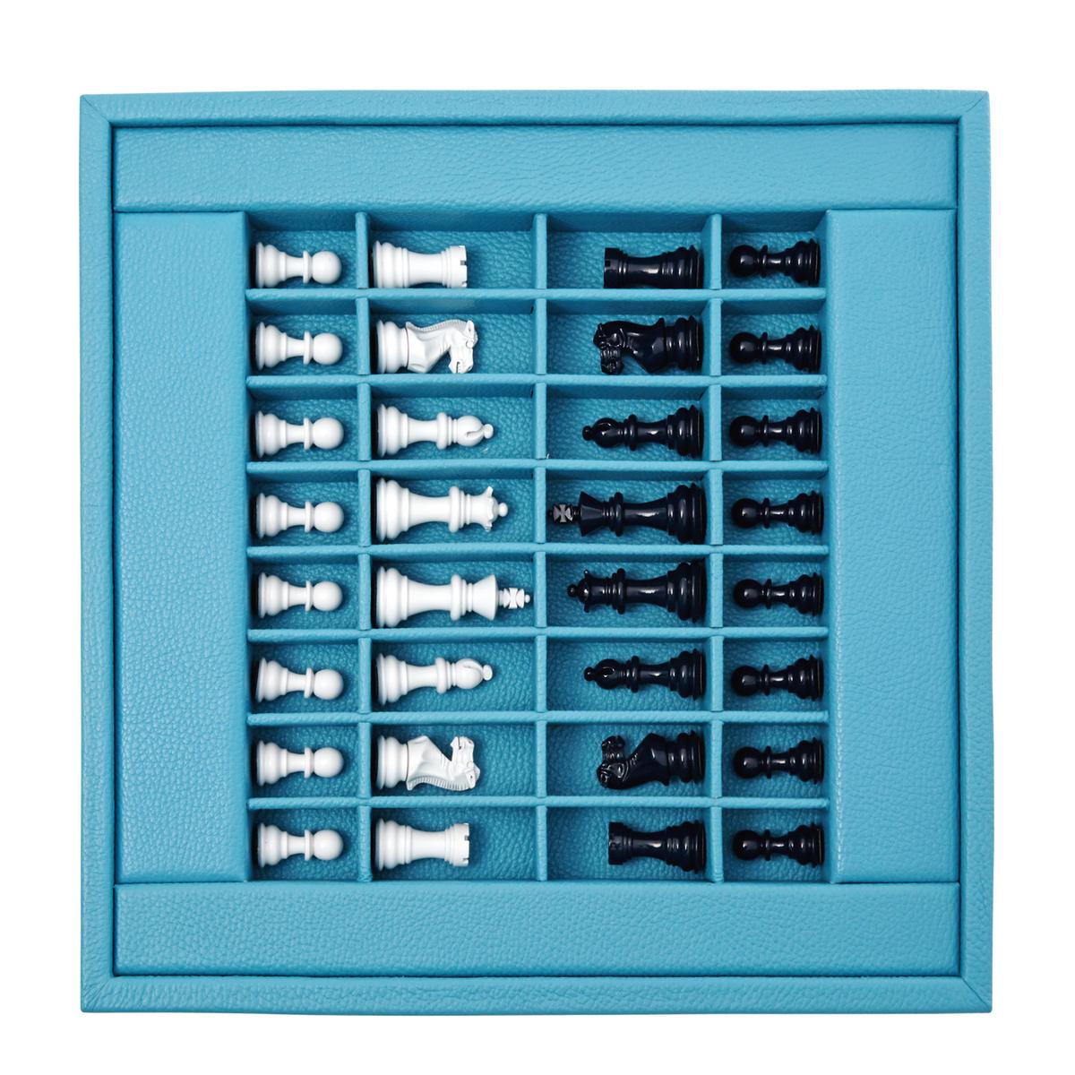 • Handmade in France, buffalo leather, lacquered wood chess pieces