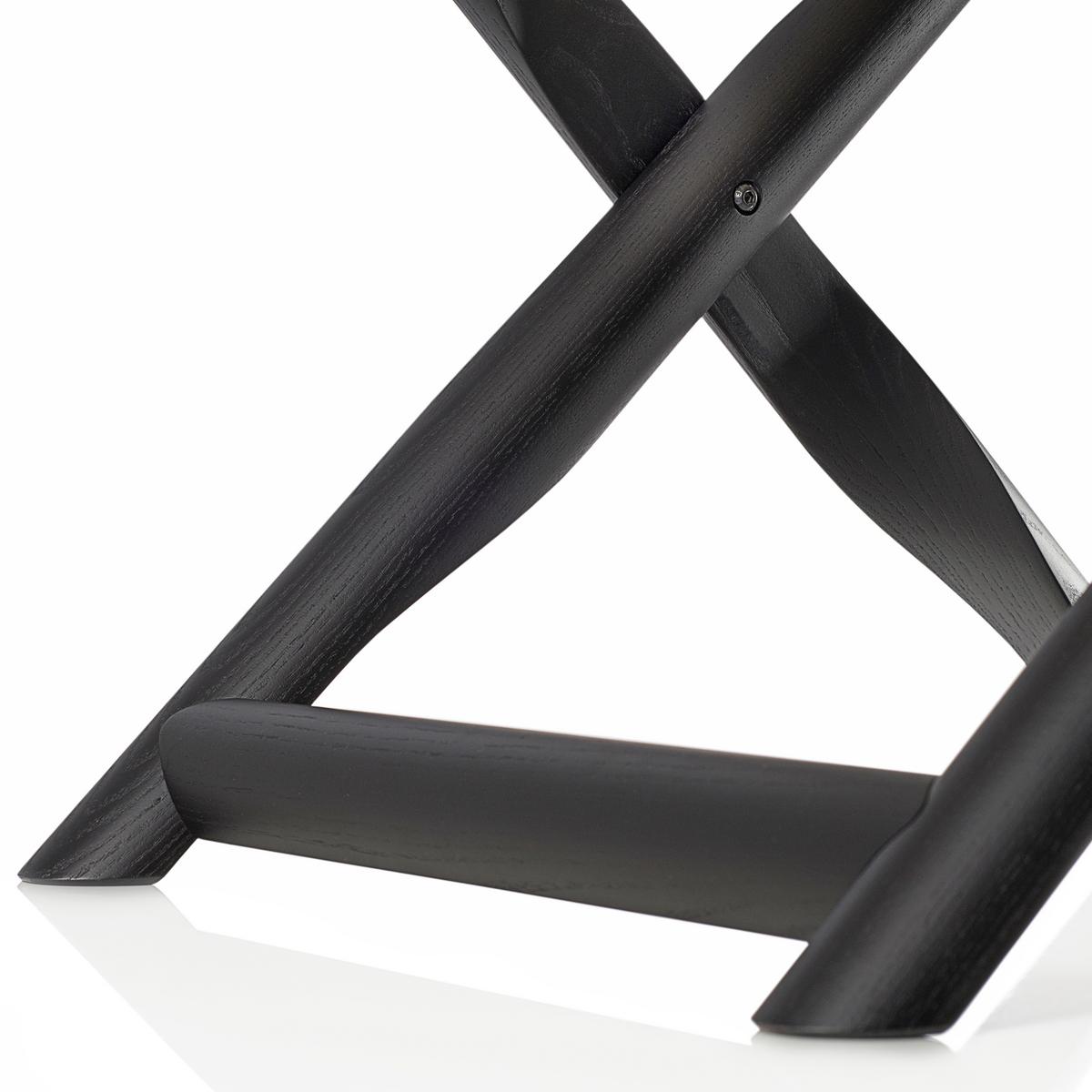 The "Elica" luggage rack is manufactured by hand in the Italian manufactory GioBagnara. The frame is of dark-brown Wenge wood. The flexible furniture can with opened at the flick of a hand to serve as a rack for your suitcase. Folded up, the "Elica" luggage rack by GioBagnara can be quickly stored in a corner.