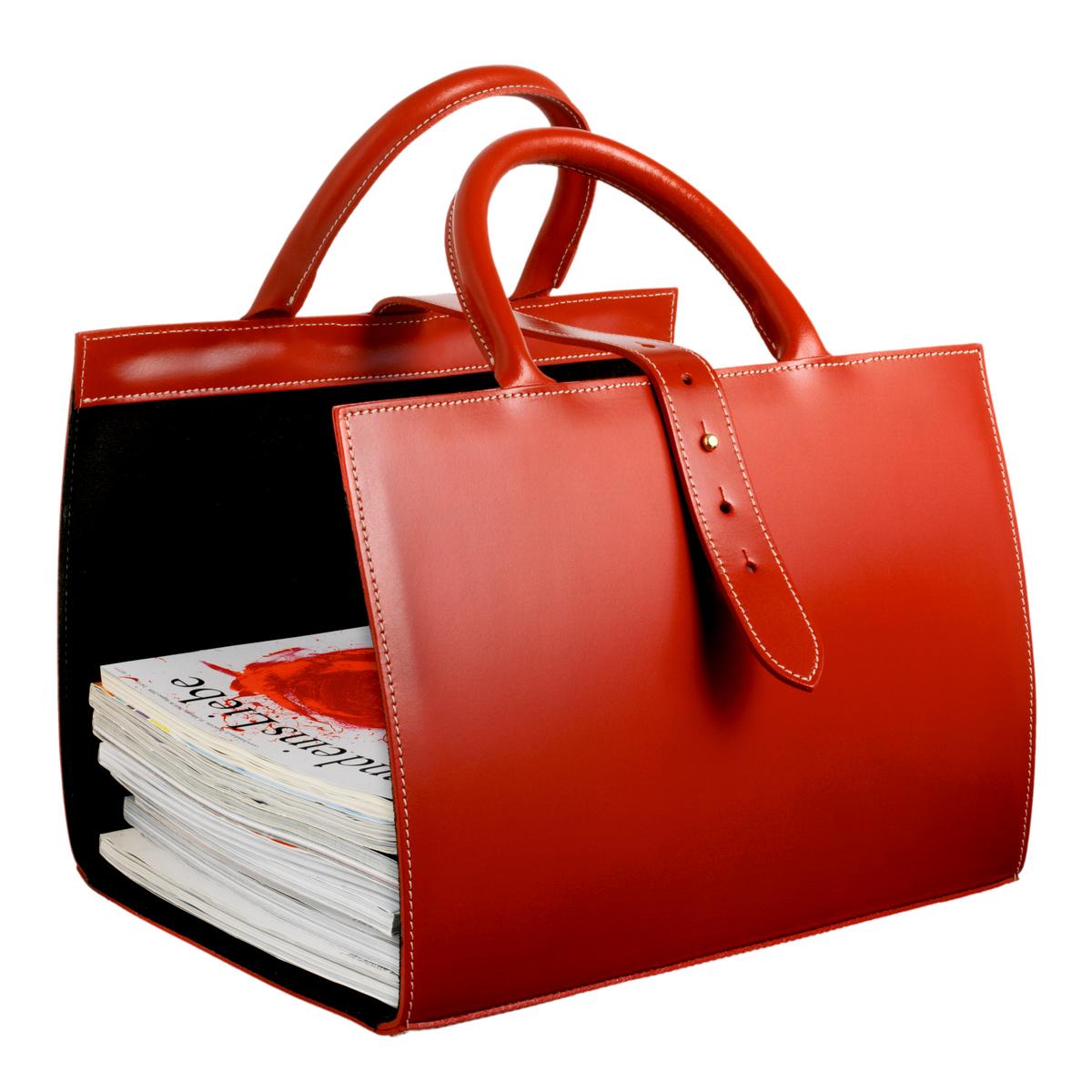 Leatherwork has a long tradition in the Pyrenees. For years, it has been used for making saddles. The magazine holder "Pyrenees is available in five colours: black, chocolate, camel, red and orange.